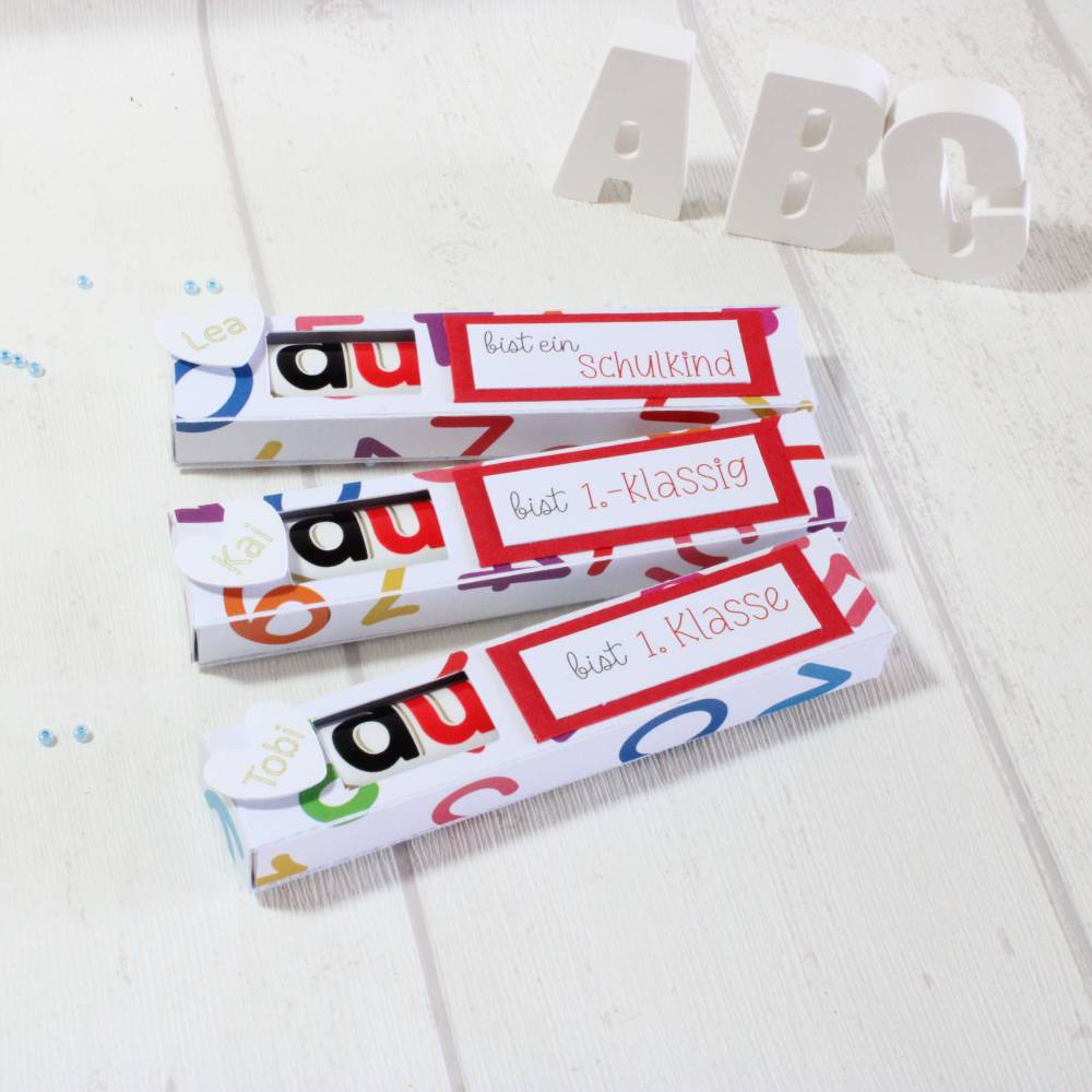 Einschulung * Schulkind * Schulanfang * Gastgeschenk * Geschenkbox für Schokoriegel * personalisierbar
