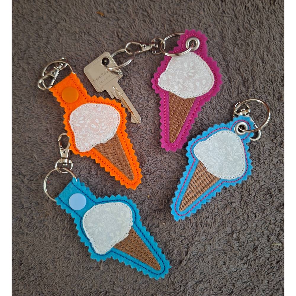 Stickdatei für eine Eiswaffel als Schlüsselanhänger.