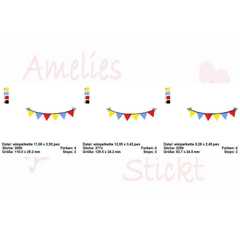 Stickdatei Wimpelkette in drei größen wimpel ab dem 10cm x 10cm rahmen