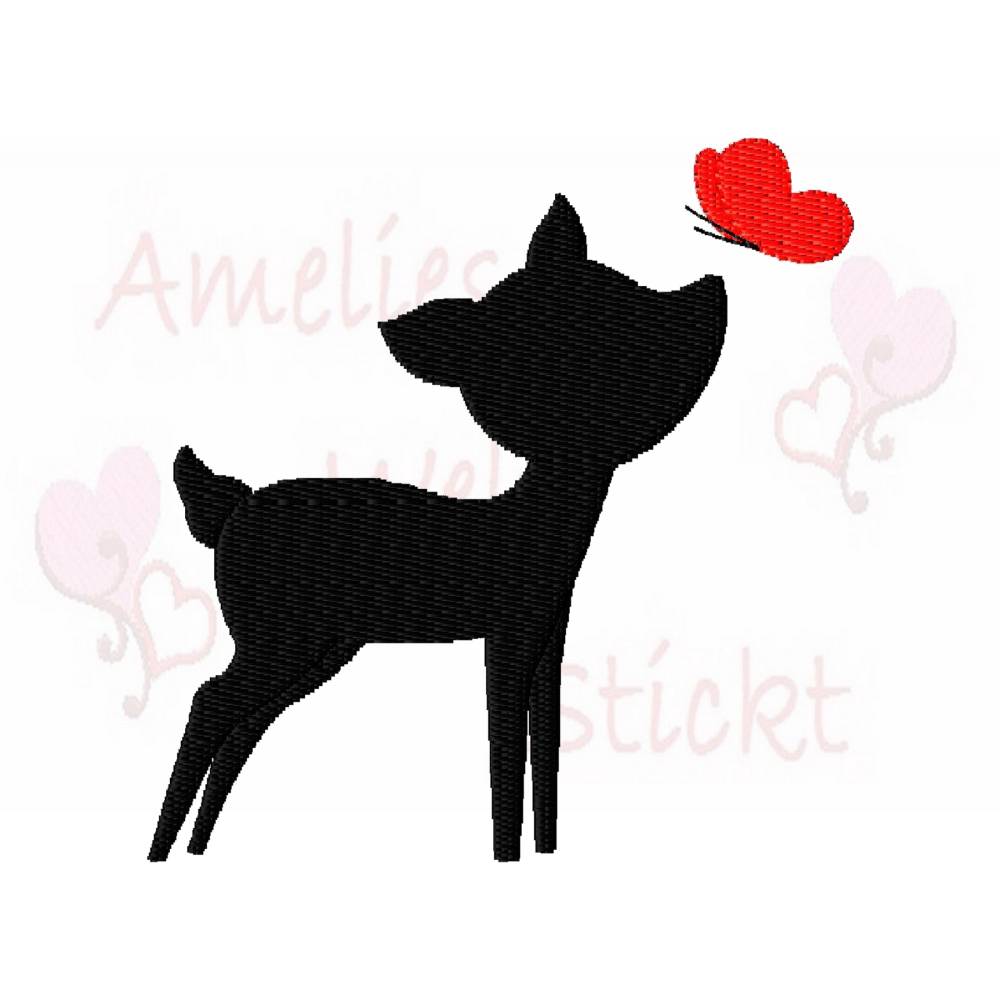 Stickdatei Rehkitz mit Schmetterling Silhouette Füllstich. Ab dem 10cm x 10cm Rahmen.