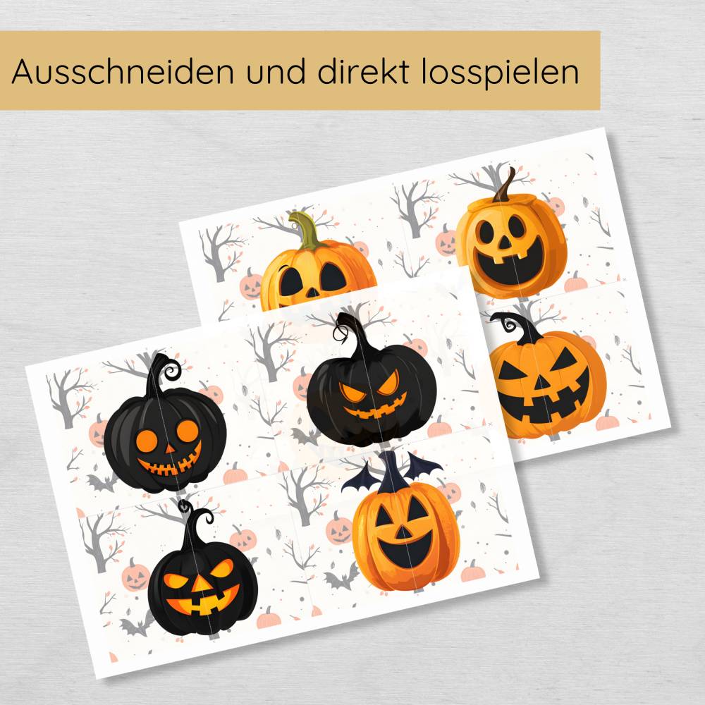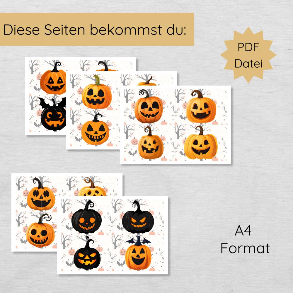 2 Teile Halloween Kürbis Puzzle für Kinder zum Ausdrucken, Hälfte zuordnen Spiel