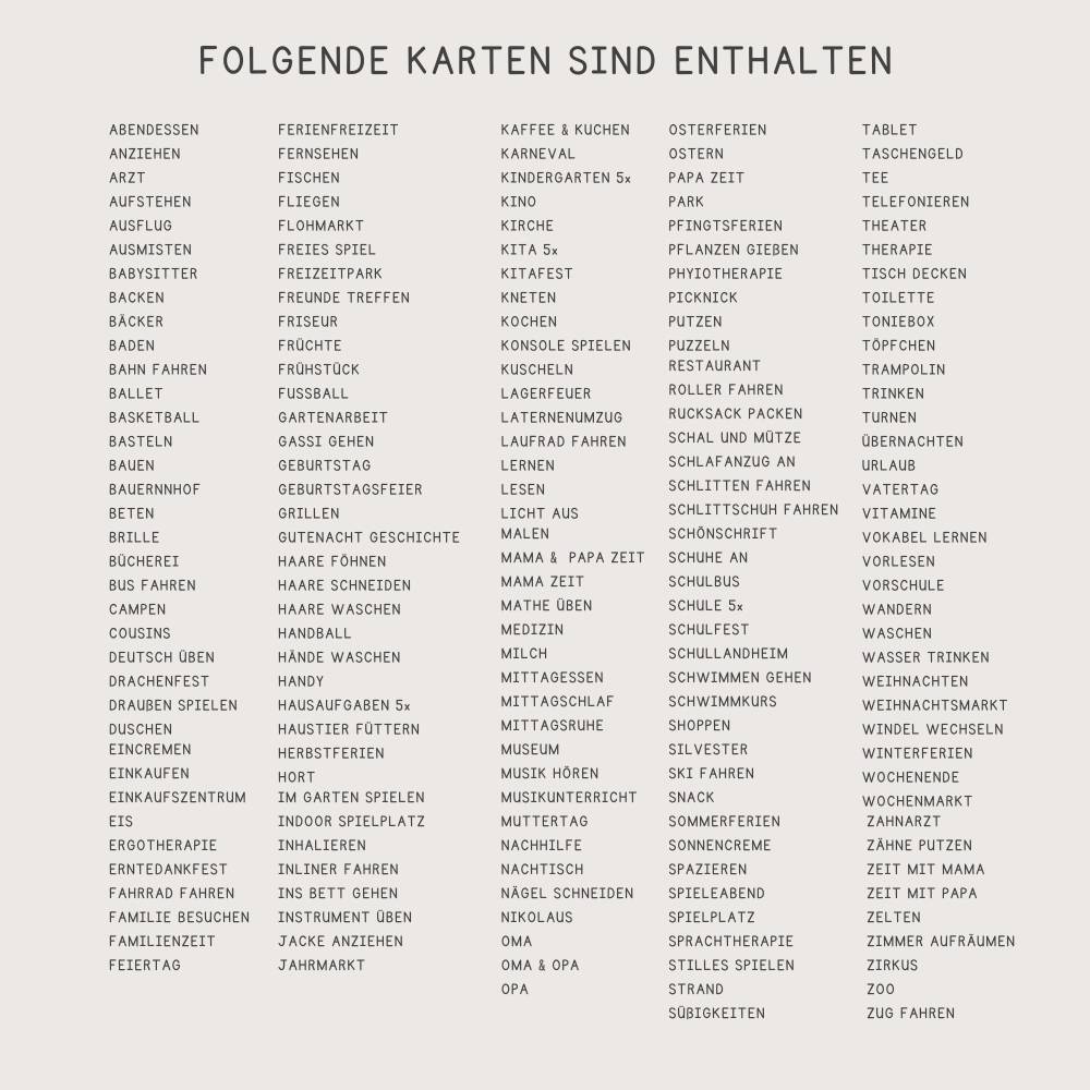 3. Flexibilität: Unsere Sets enthalten Blankokarten, damit du individuelle Aktivitäten und Aufgaben hinzufügen kannst, die auf deine Familie zugeschnitten sind.