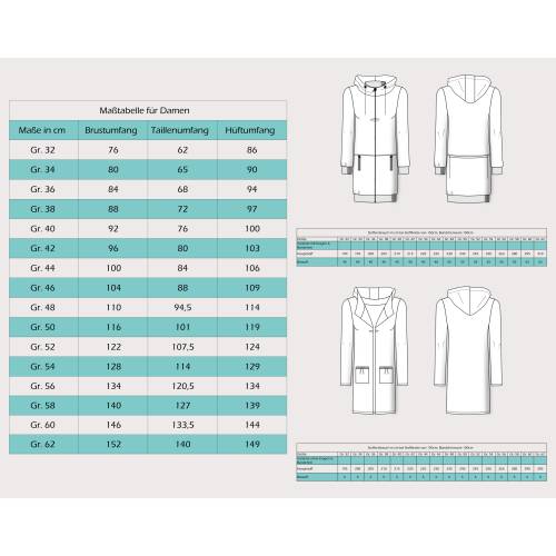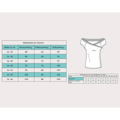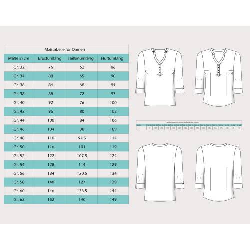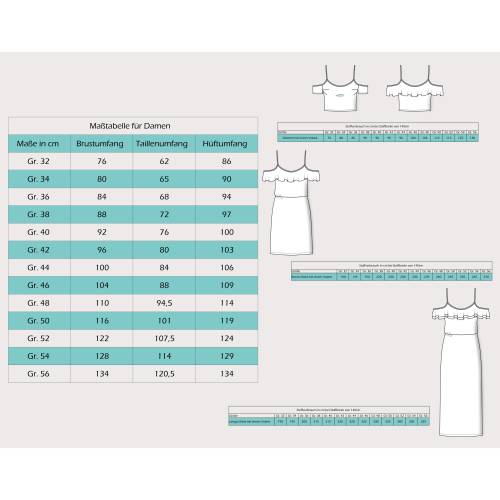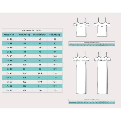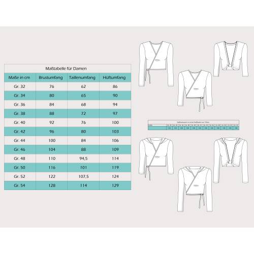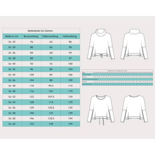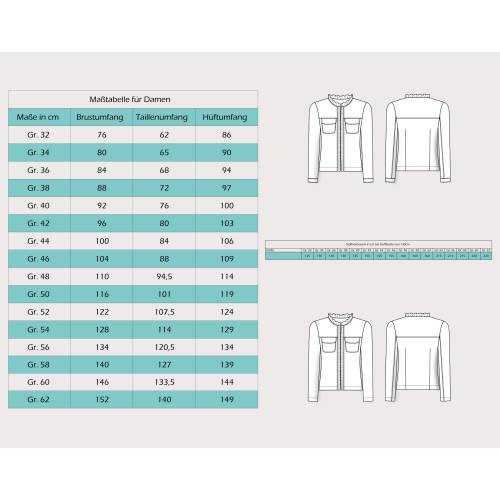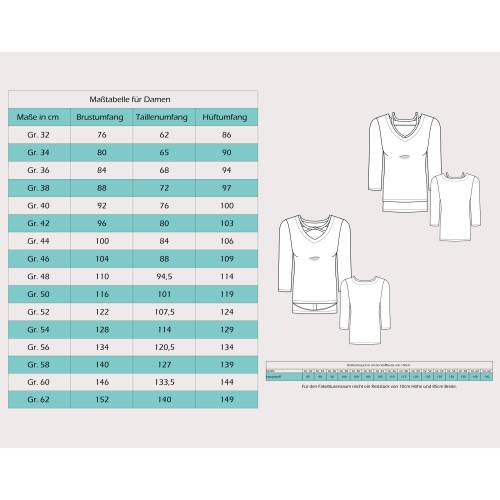 • Im Schnittmuster enthalten sind die Damengrößen 32 - 62