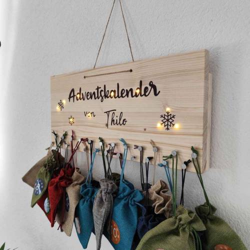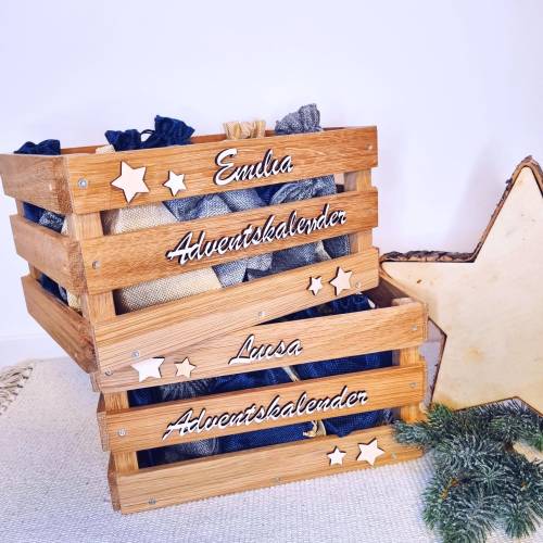 Adventskalender ist aus unbehandeltem Holz und kann jedes Jahr wieder genutzt werden.