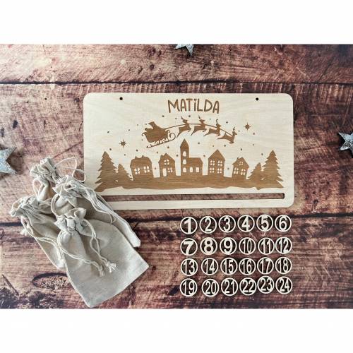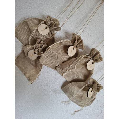 2. Komplettset ( Holzschild + 24 Jutesäckchen + 24 Zahlen)