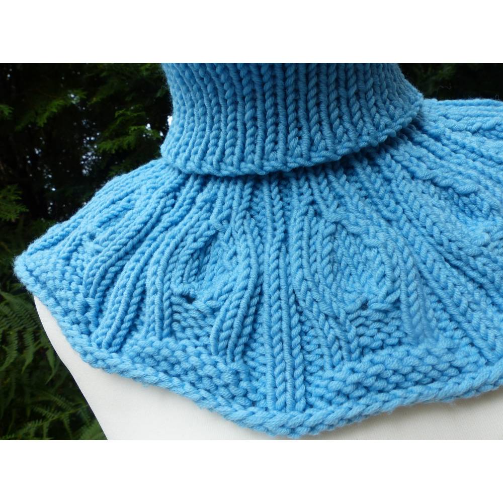 Warm anliegend wird dieser Kragen nur übergezogen und getragen wie ein Schal oder Loop. Gerne hat man es gerade im Hals-, Nacken- und Schulterbereich warm. Strickt man ihn aus einem dünneren Garn, kann er auch über ein Shirt oder dünnen Pullover vielleicht im Büroalltag getragen werden.