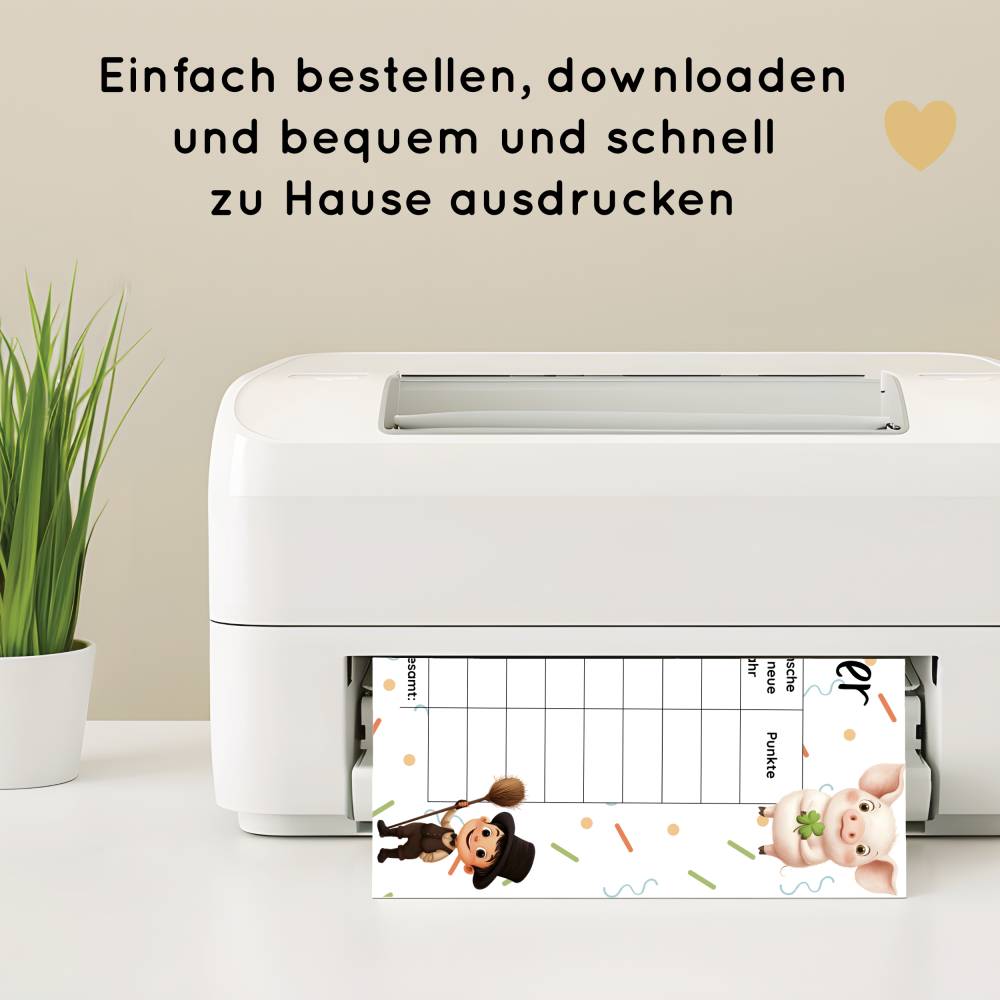 Einfach herunterladen, ausdrucken und direkt spielen – ideal für spontane Spielrunden oder als Highlight auf deiner Silvesterparty.