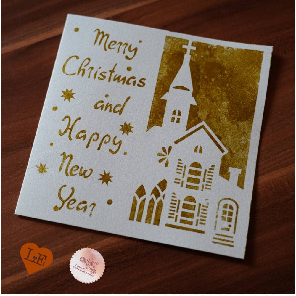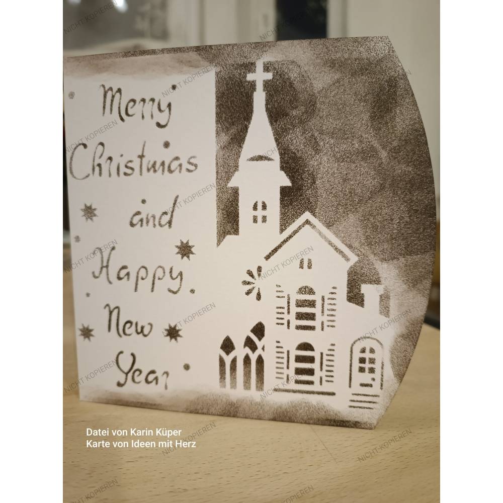 Plotterdatei Kirche Grußkartenaufleger – die perfekte DIY-Idee für einen stimmungsvollen Weihnachtsgruß! Die Datei kannst du mit einem Plotter für Karten oder mit einem 3D-Drucker oder Lasercutter zu einer schönen Weihnachts- / Neujahrdeko erstellen.