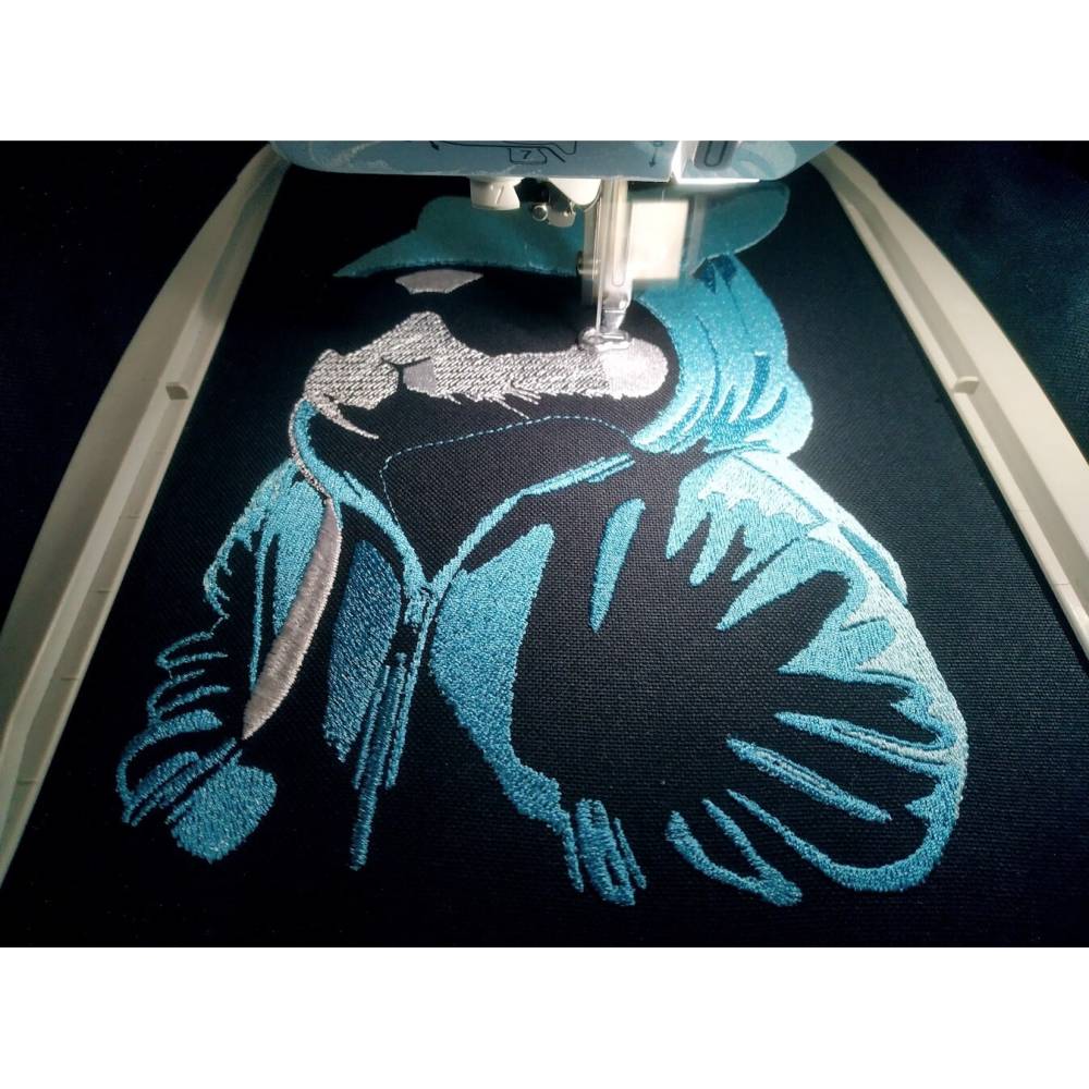 Technische Details: Die Referenzdatei für den 26x16cm PES-Rahmen hat 61.600 Stiche, Mustergröße: 24,4x15,9 cm. Die Datei ist proportional angepasst für folgende Rahmenformate: PES (16x26 cm), HUS (15x26 cm), XXX (26x16 cm), VP3 (15x26 cm), EXP (16x26 cm), DST (15x26 cm), JEF (17x20cm).