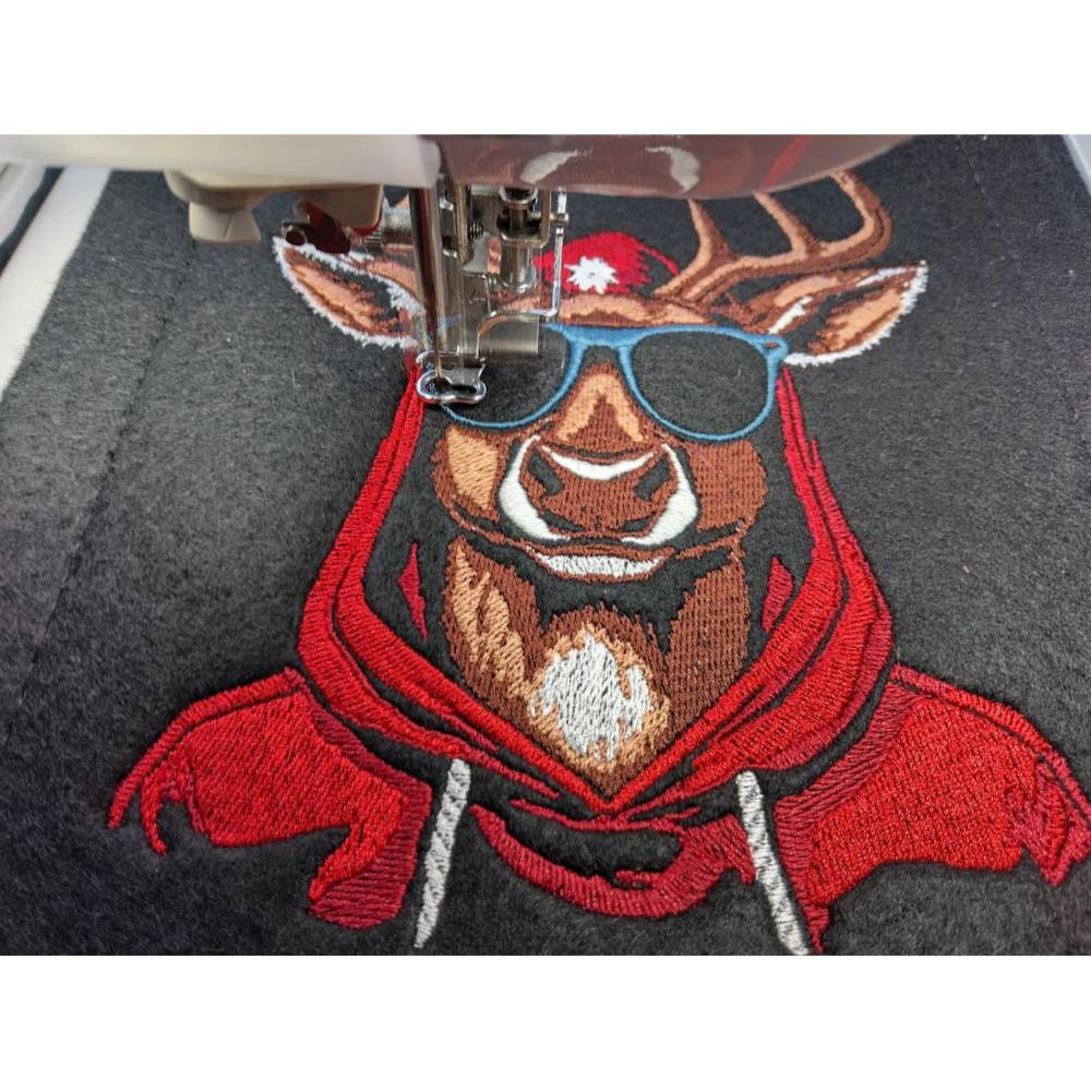 Sticke dir ein außergewöhnlich cooles Rentier-Motiv mit der Maschinen Stickdatei Rudolph cool Color Lichteffekt! Dieses lustige Tiermotiv sorgt nicht nur zu Weihnachten für Aufsehen, sondern begeistert das ganze Jahr über mit seinem modernen Lichteffekt. Besonders auf schwarzen Textilien kommt das Design optimal zur Geltung und macht deinen Hoodie zum echten Hingucker – du bist völlig frei in deiner Farbwahl, es muss nicht immer Rot sein!