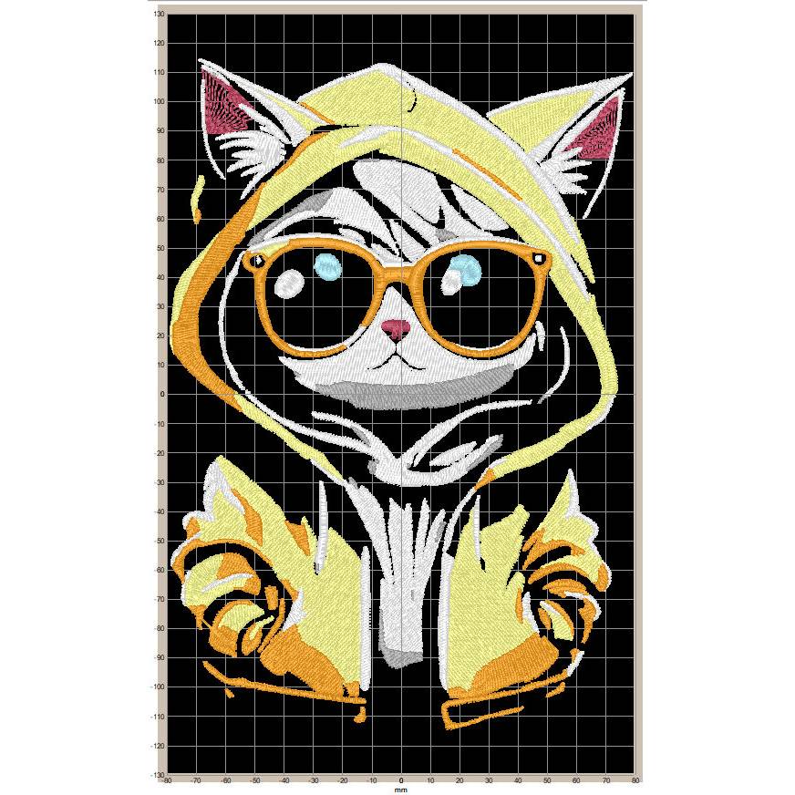 Maschinen Stickdatei - Katze cool Color Lichteffekt 12-14*18cm