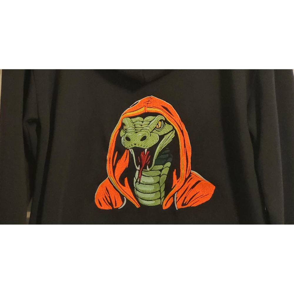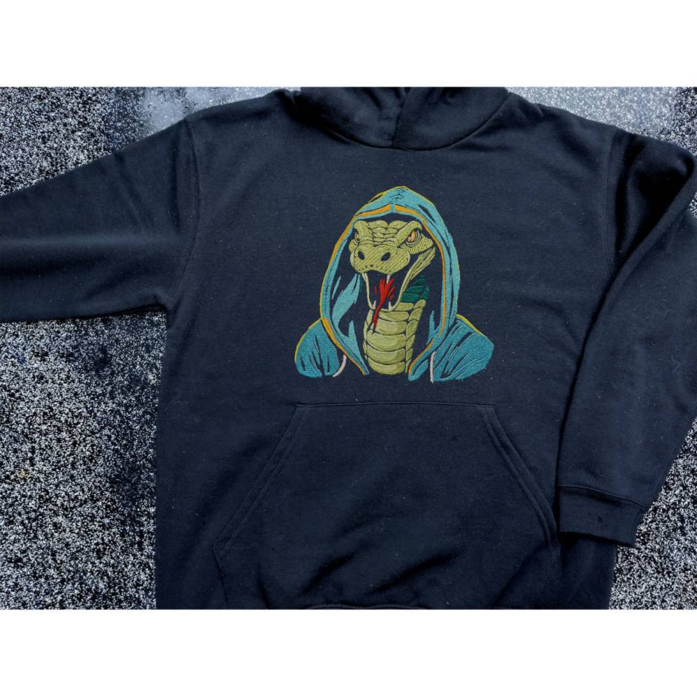 Lustiges Reptilienmotiv, dargestellt passend zu unserer cool Color Lichteffekt Serie. Die Farbe der Schlange und des Hoodies lässt sich gut anpassen.