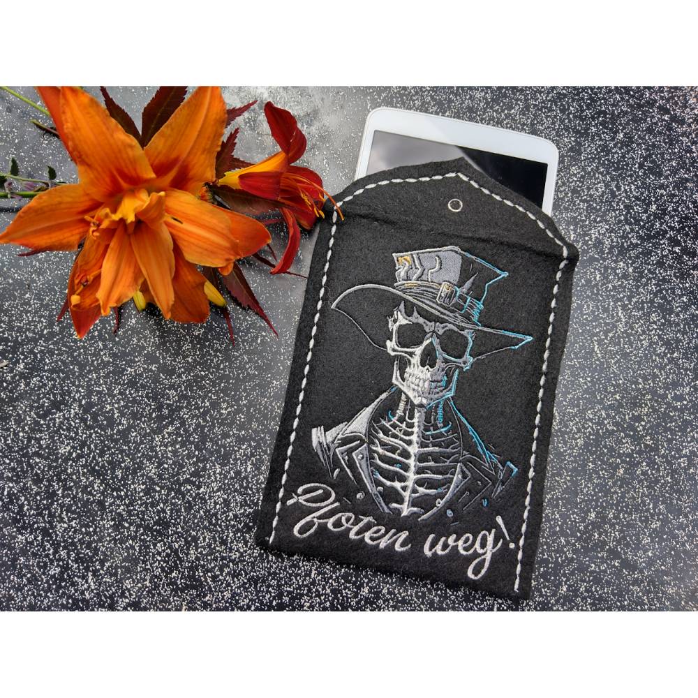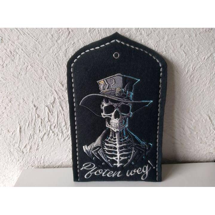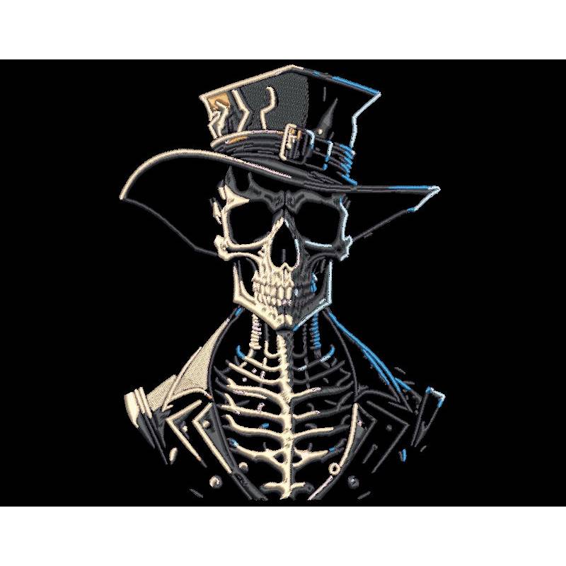 Maschinen Stickdatei - Skelett mit Hut Lichteffekt 12-14x18cm