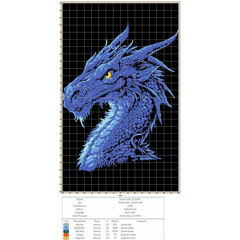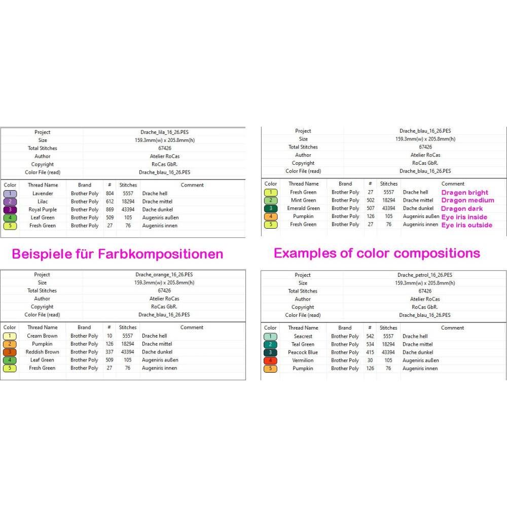 Maschinen Stickdatei - Drache Color Lichteffekt 12-14*18cm