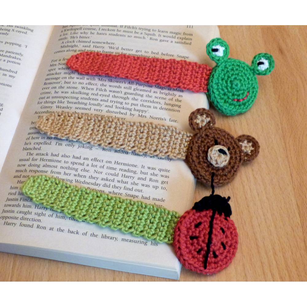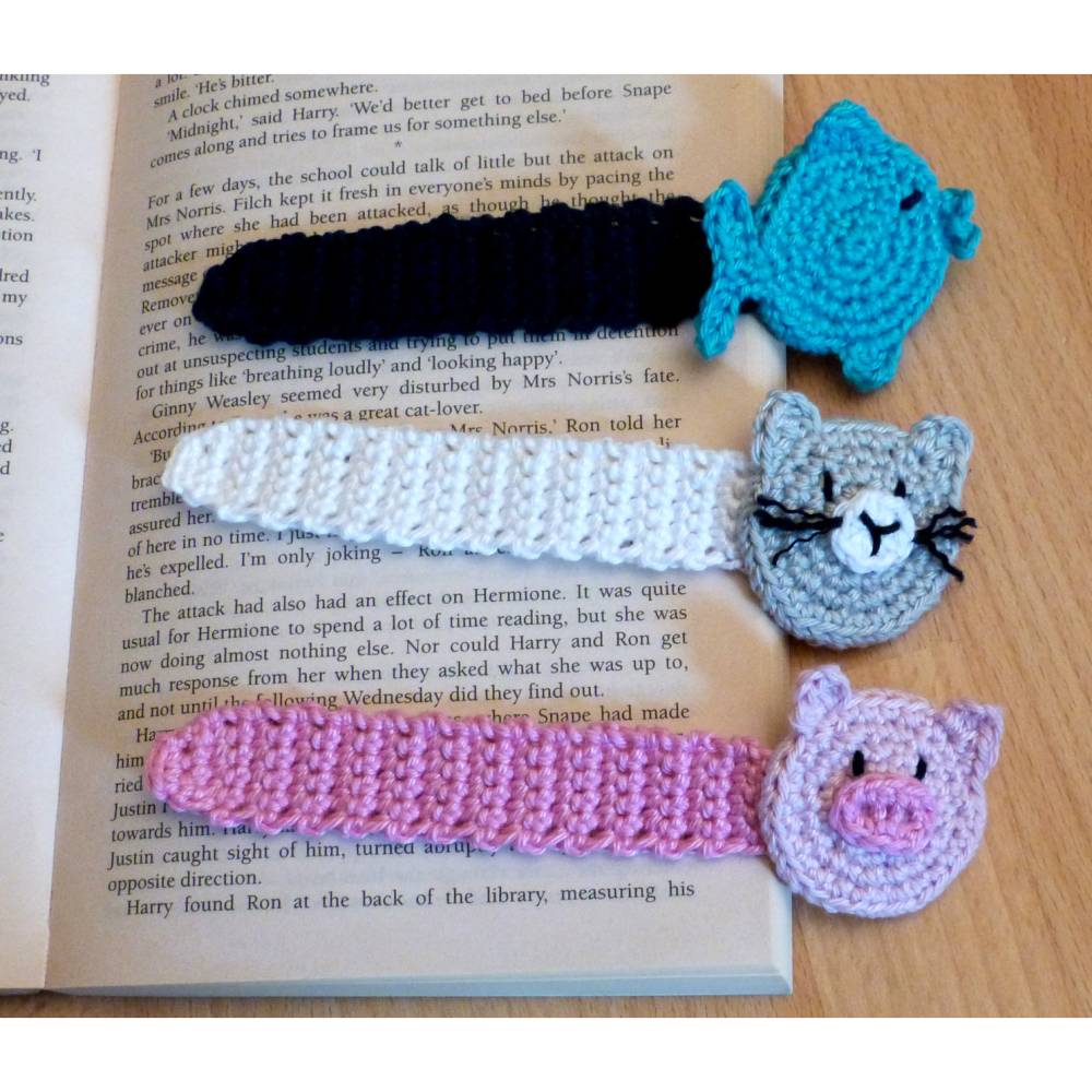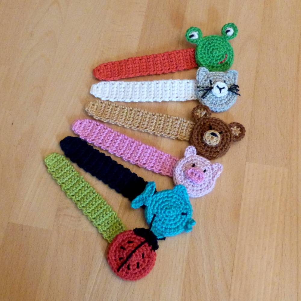 Häkelanleitung Lesezeichen "Tiere" Katze, Schwein, Frosch, Fisch, Marienkäfer, Bär, pdf-Datei