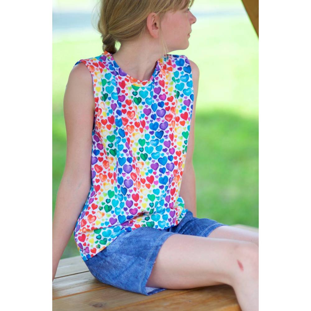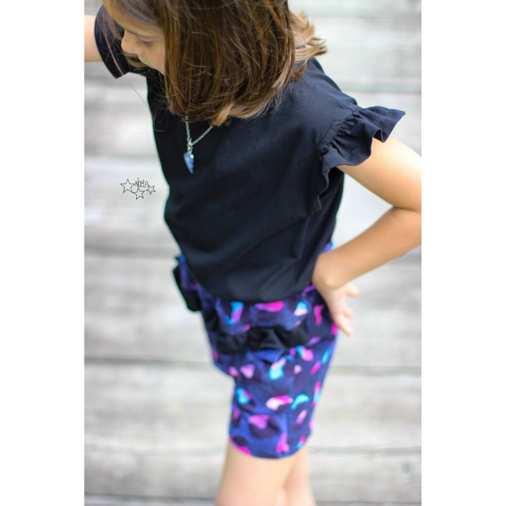 Die Rüschen sind sowohl beim Shirt als auch bei der Hose optional. Außerdem kannst Du beim Shirt, dessen Schultern leicht überschnitten sind, eine ärmellose Variante mit Belegen wählen. Und wenn Du gänzlich auf die Rüschen verzichtest, eignet sich Lillebee übrigens auch ganz hervorragend als Sommerschlafi!