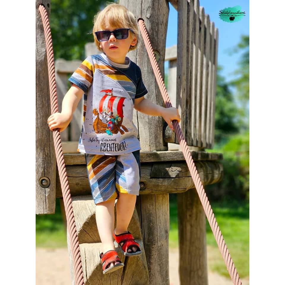 Amigo ist ein einfaches und trotzdem cooles Shirt mit vielen Teilungsoptionen. Du kannst mit dem Schnittmuster Panels verwenden und gleichzeitig viele tolle Stoffmustermischungen einsetzen. Perfekt für Shirts die durch deine Umsetzung zu einem echten Highlight werden! Möchtest du gerne ein Jungenshirt mit Tüddel aufpeppen? Amigo lässt sich super durch Paspeln, Ziernähte oder Labels aufhübschen, sodass jedes Shirt das du nähst ein echtes Unikat wird. Die einfache und bequeme Passform des Shirts sorgt dafür, dass Amigo sowohl zum Spielen, für die Schule und auch alle anderen Aktivitäten ein treuer Begleiter sein kann. Lange und kurze Ärmel machen das Schnittmuster für jede Jahreszeit einsetzbar. Amigo verfügt über einen Rundhalsausschnitt und wird am Abschluss entweder gesäumt oder mit einem Bündchen versehen. Passend zum Shirt Amigo gibt es übrigens auch das Schnittmuster für eine Hose - ebenfalls unter dem Namen Amigo - welches die Teilungen des Oberteils spiegelt.