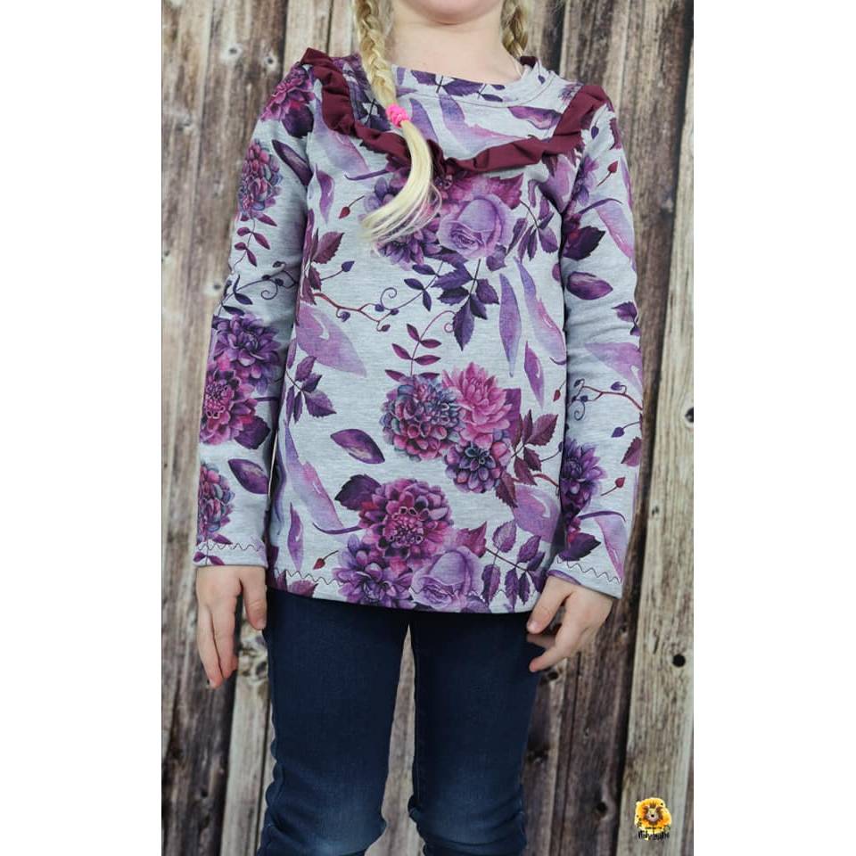 schmal geschnitten mit vielen Details Das Rüschenshirt ist ein Schnitt aus meiner Basicserie. Alle Schnitte, die dazugehören, sind dazu gedacht, ein einfaches, unkompliziertes Nähen zu ermöglichen und Stoffe toll wirken zu lassen. Besonderes Augenmerk habe ich darauf gelegt, dass die Schnittmuster, trotz ihrer eher einfachen Form, das gewisse Etwas nicht verlieren. Eben Teilchen, die Spaß machen, sich ultra bequem tragen lassen, für Anfänger geeignet sind und einfach trotzdem viel hermachen :)! Das schmal geschnittene Rüschenshirt bringt trotz seiner einfachen Form durch Teilungen und Rüschen viel mit. Das Oberteil ist auf der Vorder- und Rückseite durch eine gebogene Teilung auf Brusthöhe bestens dazu geeignet, Stoffe zu kombinieren. In diese Teilung kannst du entweder gekaufte Rüschen, die Rüsche aus dem Schnittmusterteil oder gar keine Rüsche anbringen. Für was auch immer du dich entscheidest, hast du die Wahl zwischen der vorderen, hinteren oder beiden Teilungen. Auf der Rückseite kannst du das Rüschenshirt entweder mit Knopfleiste (Teilung nötig) oder ohne nähen. So oder so, geht das Rüschenshirt prima über den Kopf. Die Abschlüsse des Rüschenshirts sind auf einen Saum ausgelegt, können allerdings auch durch eine weitere Rüsche oder Bündchen abgeschlossen werden. Genaueres dazu wird dir in den Anleitungen erklärt. Sieh dir am besten gleich die tollen Designbeispiele weiter hinten im Ebook an, um viele tolle Inspirationen zu entdecken!