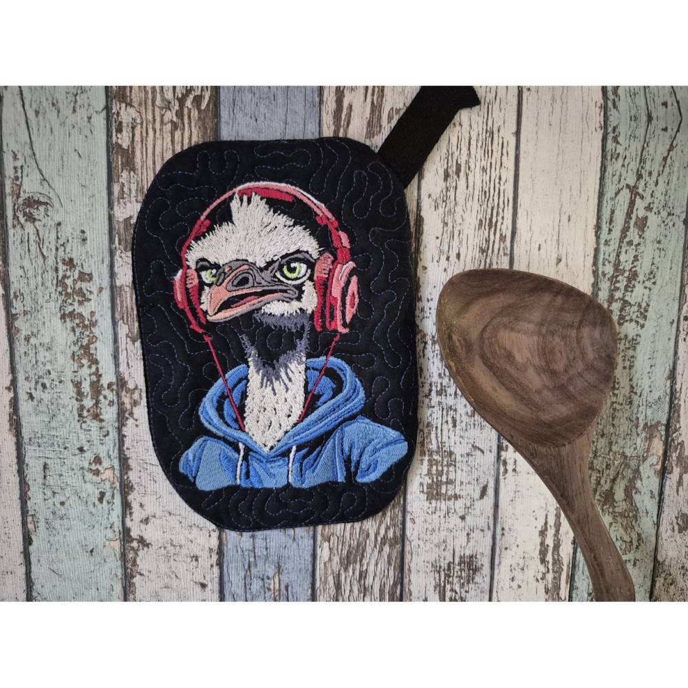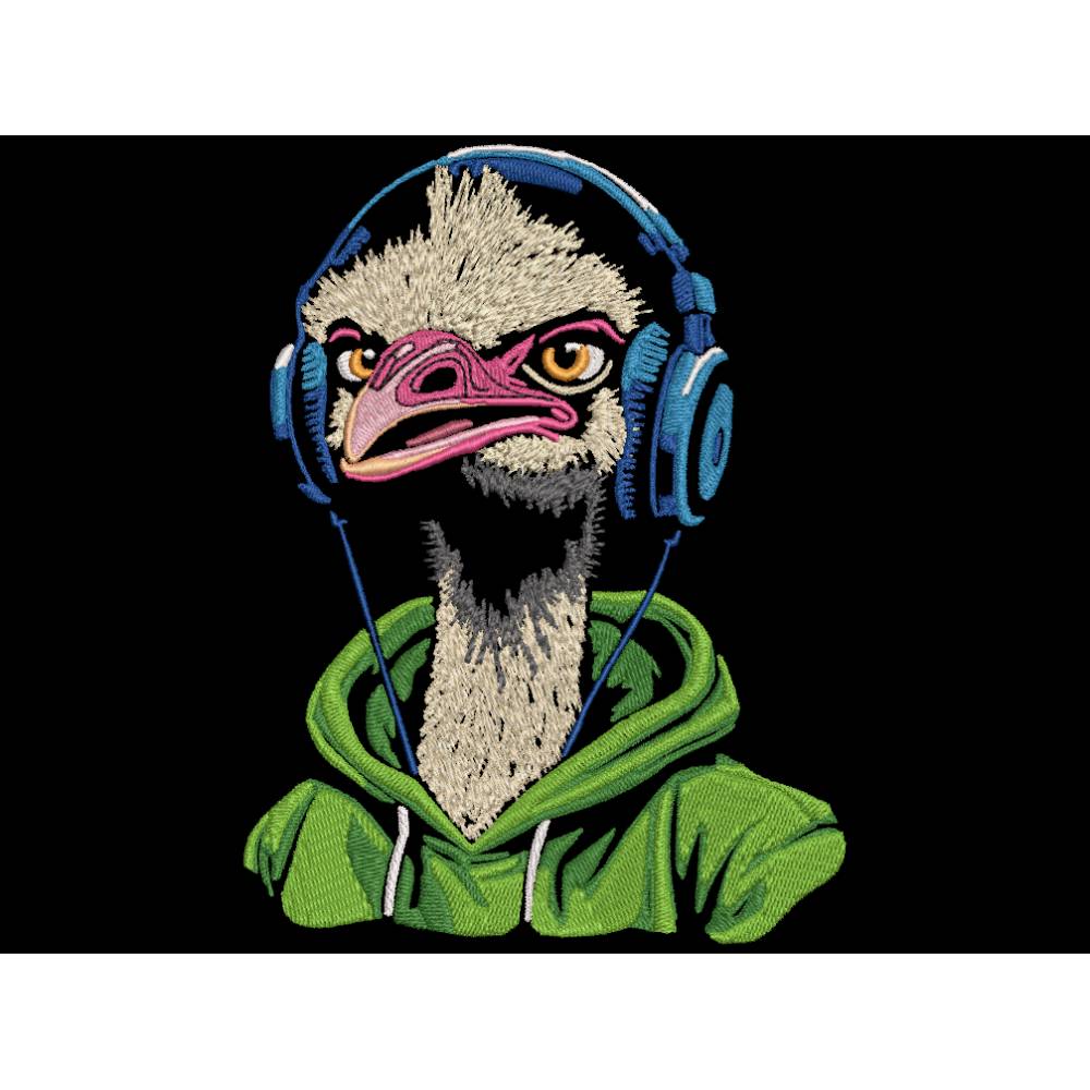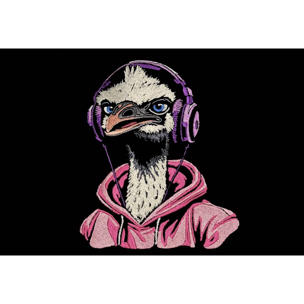 Lustiges Tiermotiv, ein Strauß, der aus dem Dschungel geflüchtet ist