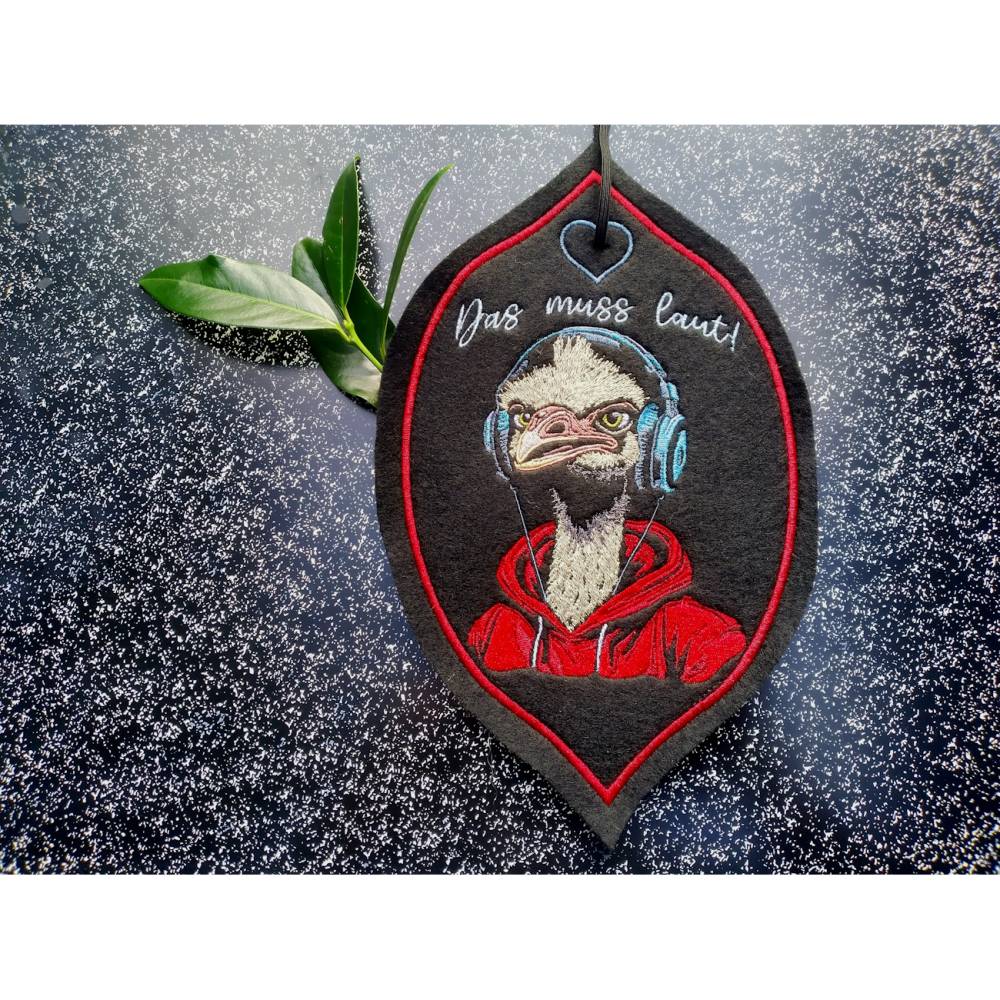 Stickmaschine mit entsprechender Rahmengröße, bitte evtl. Stichzahlenbegrenzung beachten.