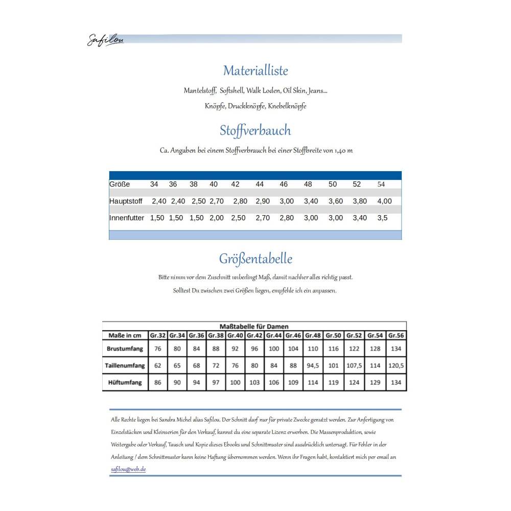 - Die Anleitung ist auf Stoffe wie Mantelstoff, Softshell und Walk ausgelegt.