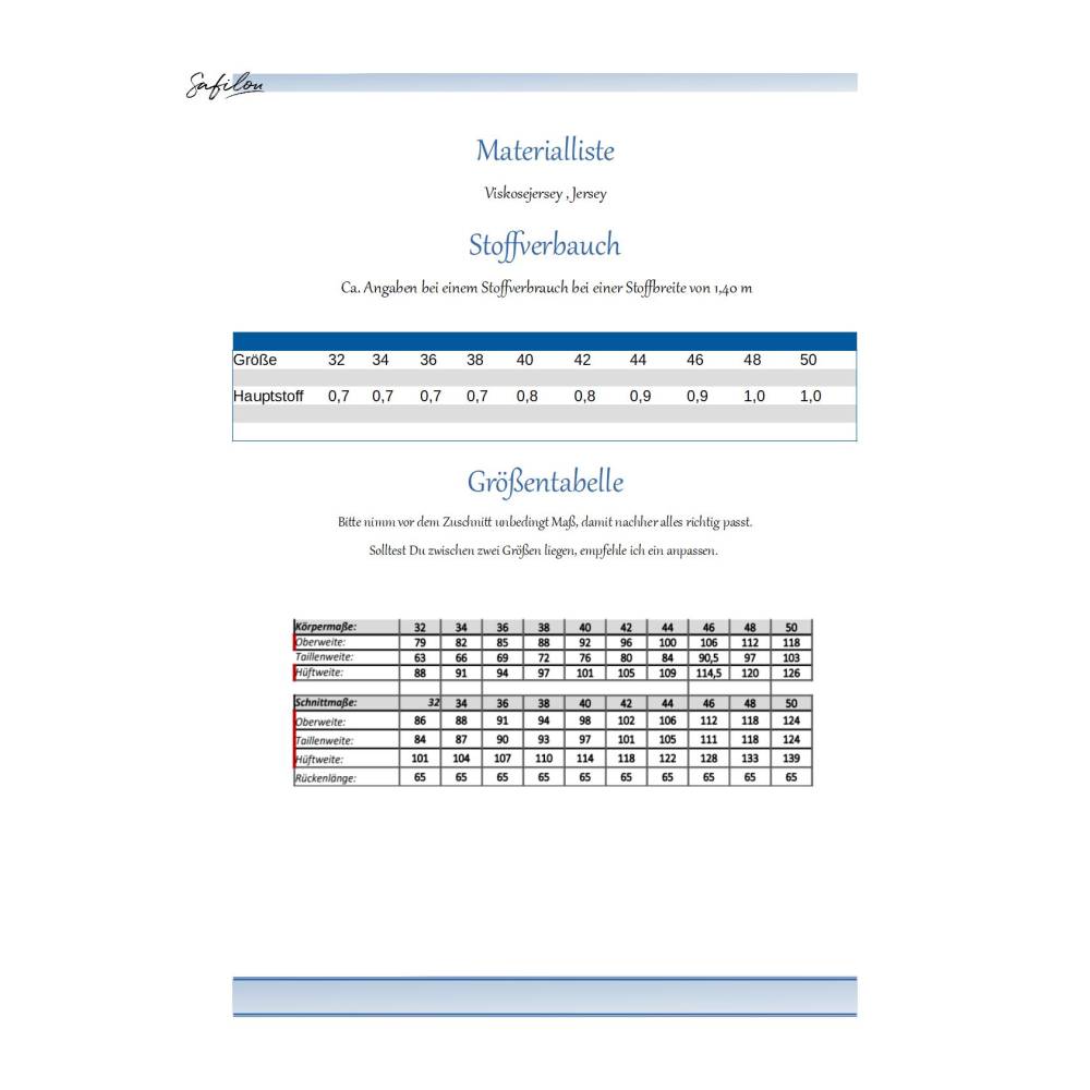 - Die Anleitung ist auf Stoffe wie Viscosejersey und Jersey ausgelegt.