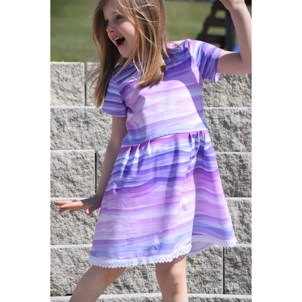 Es gibt mehrere Varianten, die man nähen kann. Eine Version für lange oder kurze Ärmel, sowie 2 Rocklängen,sodass man entweder ein Kleid (ca. knielang) oder eine Tunika nähen kann.