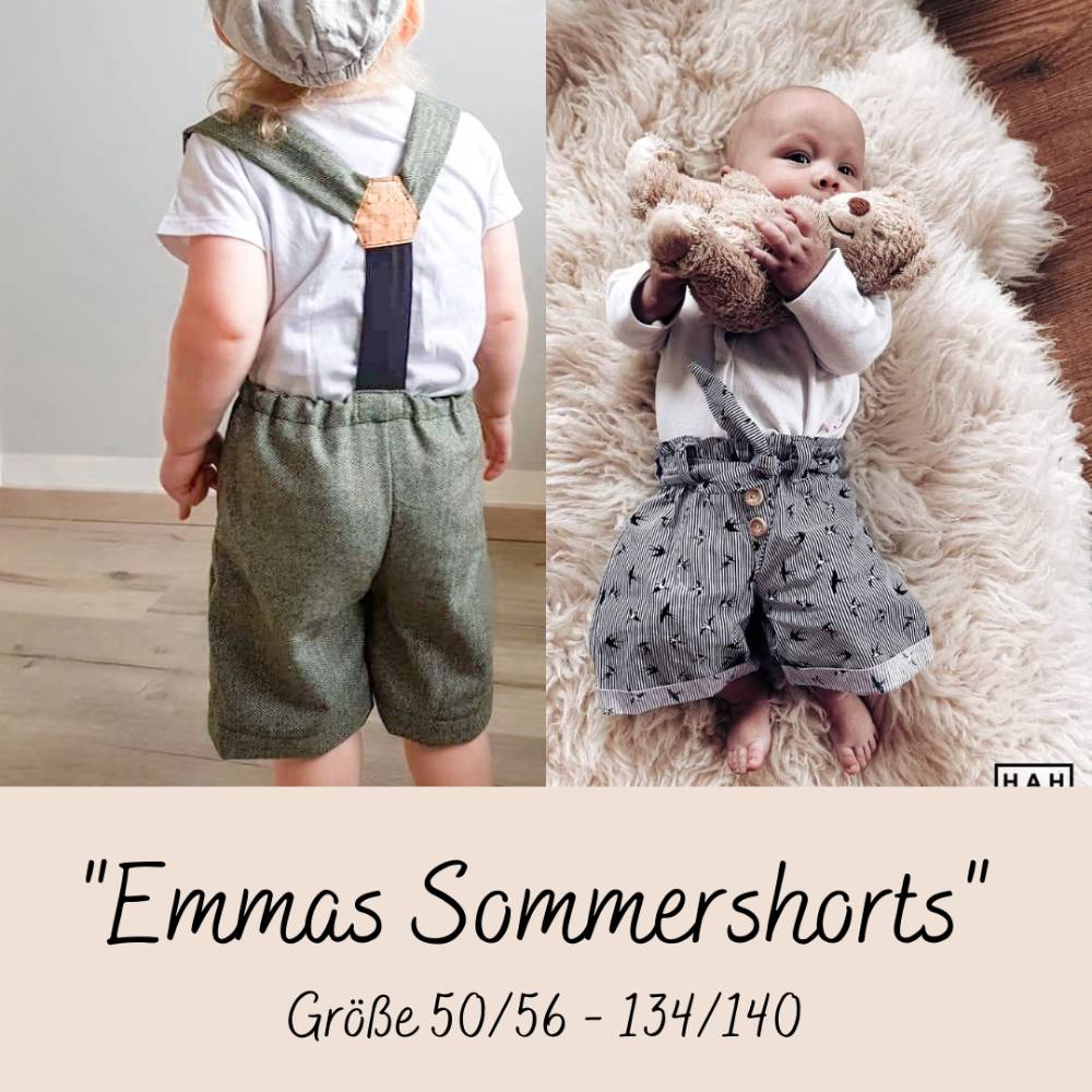 Das Schnittmuster für "Emmas Sommershorts" Ist ein Schnitt für Kinder mit den Größen 50/56 bis 134/140