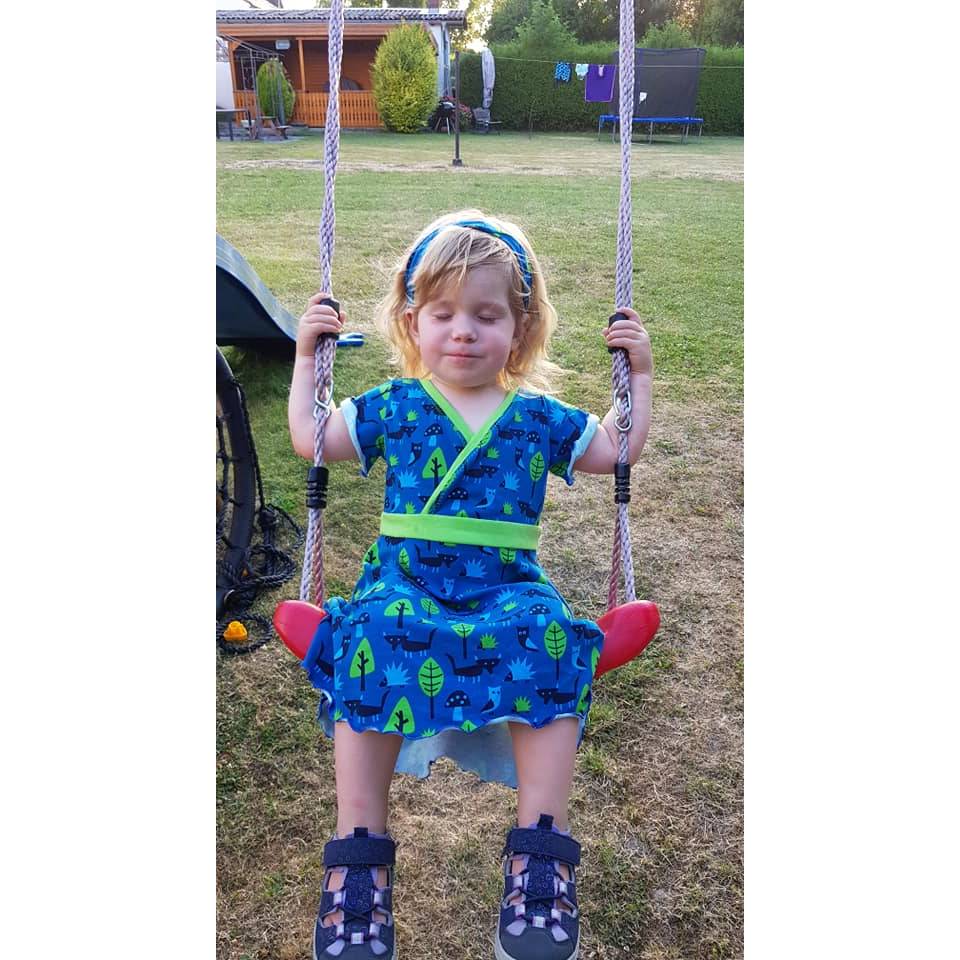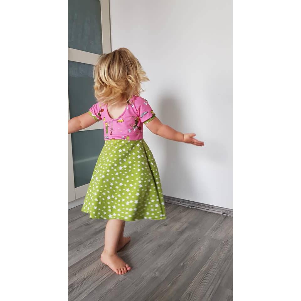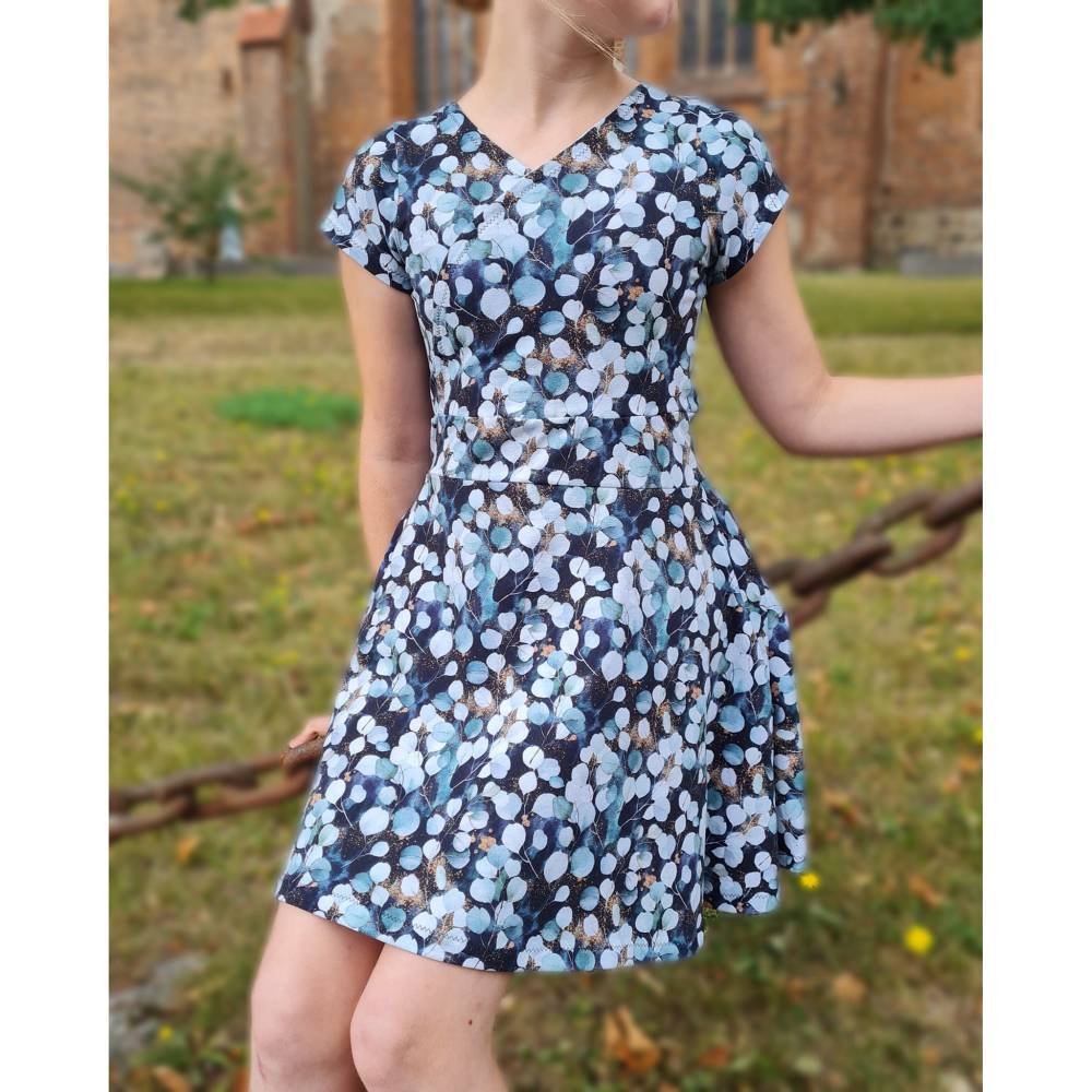Der Schnitt ist für dehnbare Stoffe konzipiert, mit viel Spielraum zum tüddeln und verzieren.