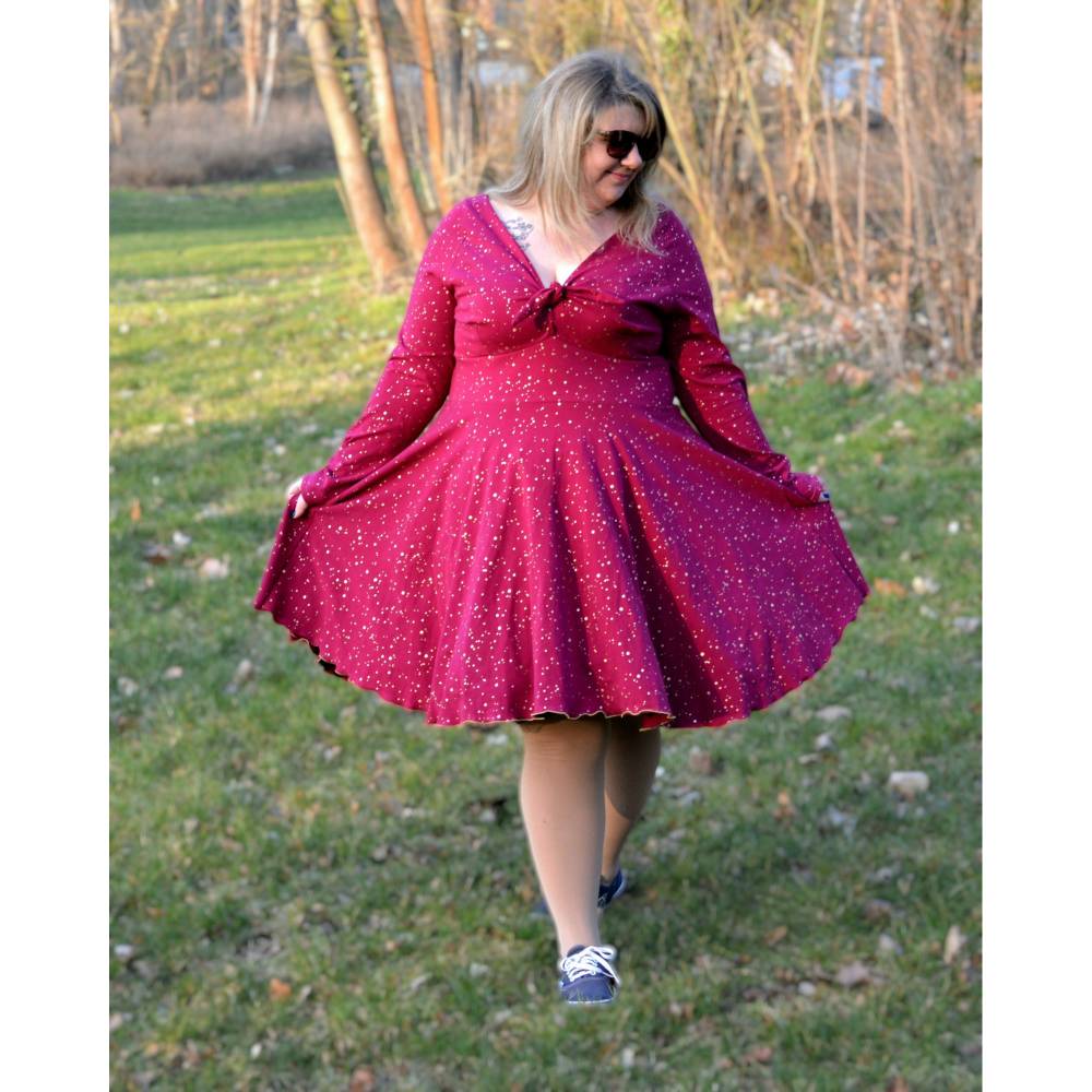 Das Schnittmuster für das Kleid "Cherry" Ist ein Schnitt für Damen mit den Größen 32 bis 54. Bzw dem Brustumfang 83-136, Taillenumfang 60-121.