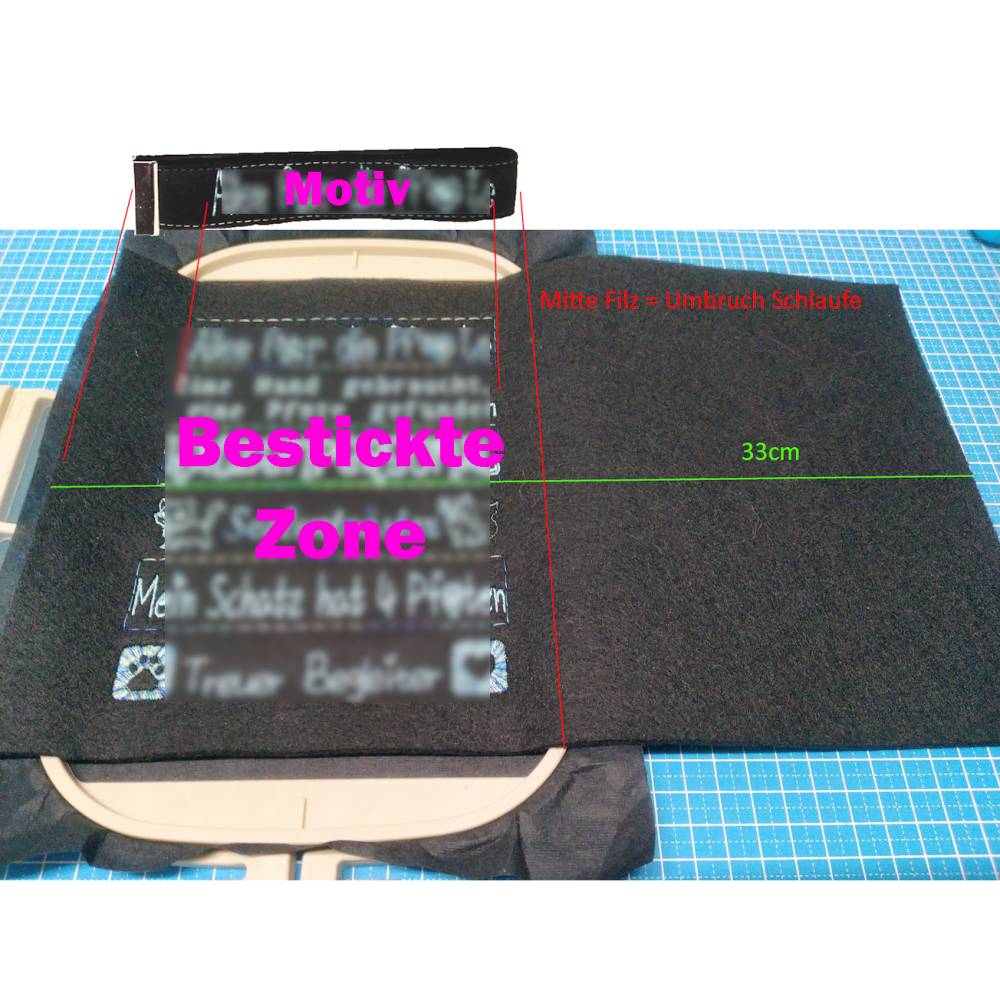 Die Kästchen im ersten Arbeitsschritt dienen als Fixierung des Filzstoffes, denn den kann man besser aufnähen als einspannen. Aber auch beim Schneiden sind die Linien sehr hilfreich (wir haben mit dem Rollenschneider entlang dieser Nähte geschnitten), müssen aber entfernt werden, da diese aber fast 6mm Stichlänge haben, geht das recht schnell. Wer die Kästchen nicht haben möchte, überspringt den Arbeitsschritt ;) Wir haben die Bänder mit der Nähmaschine knappkantig abgesteppt (optional).