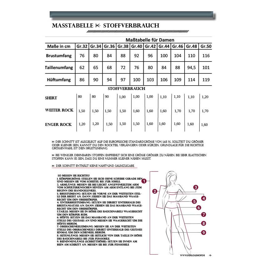 - Das Schnittmuster ist für fortgeschrittene Näher geeignet.