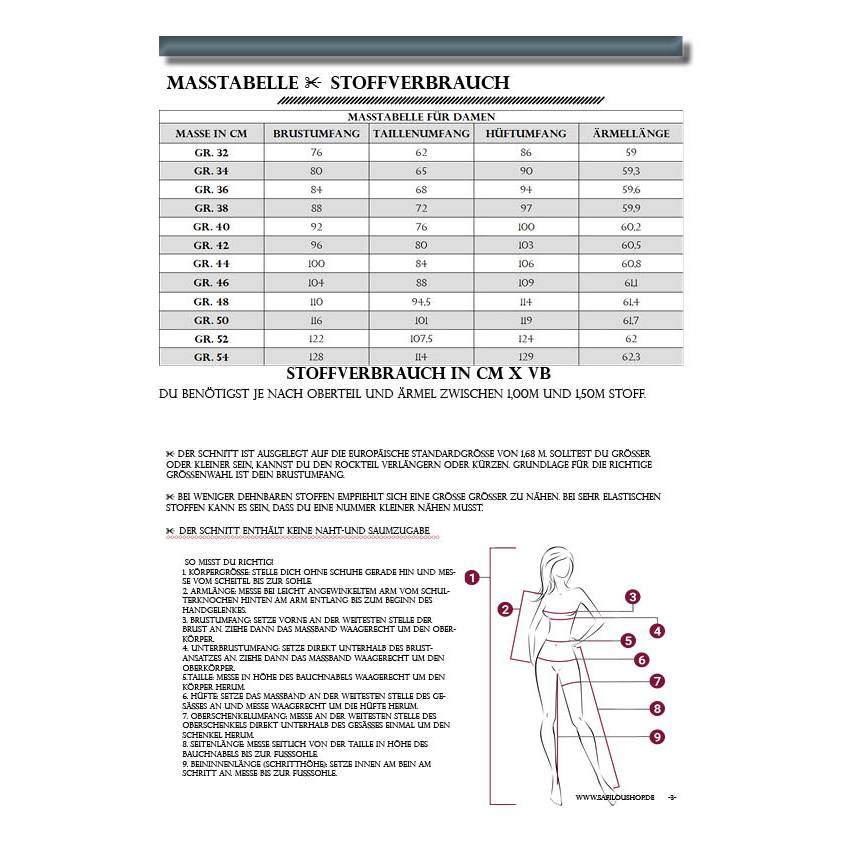 - Das Schnittmuster ist für fortgeschrittene Näher geeignet.