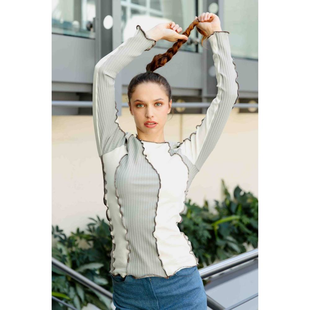 Mit dem Langarmshirt Schnittmuster kannst du dir ein cooles Jersey Oberteil mithilfe deiner Overlock nähen.