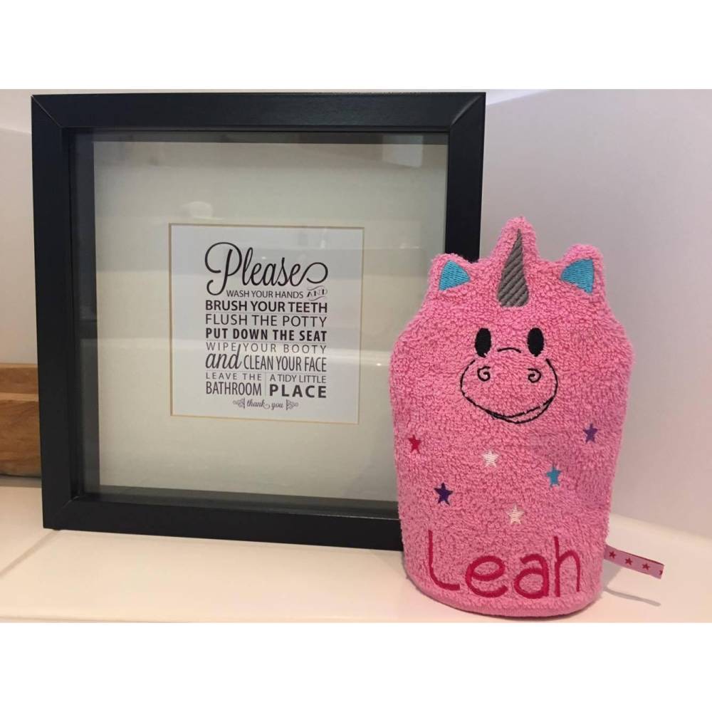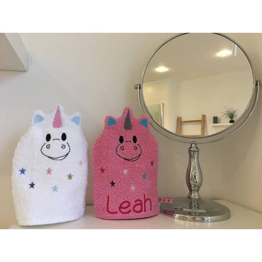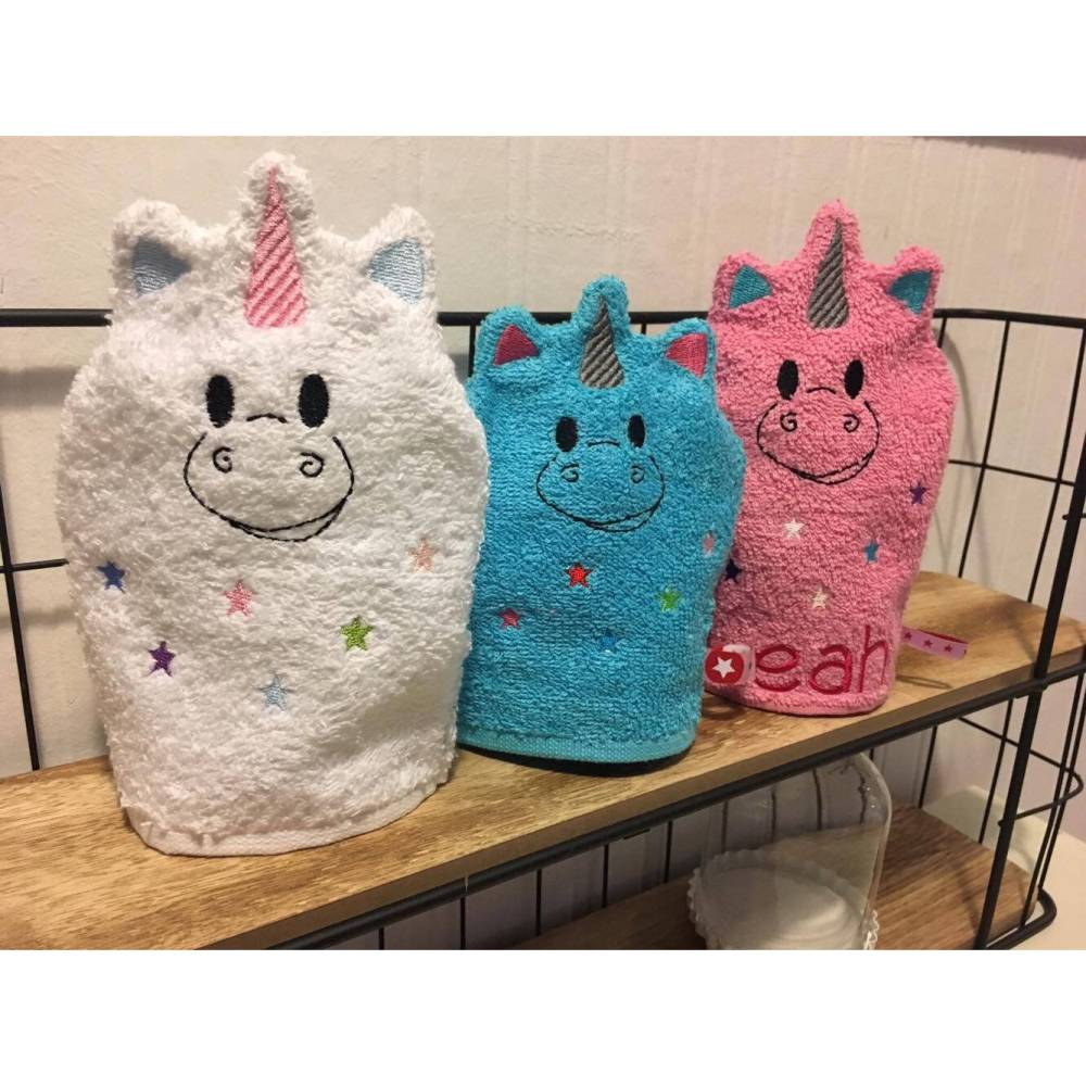 Der Waschlappen hat am Ende eine Breite von 12 cm und eine Länge an der höchsten Stelle von 21 cm.