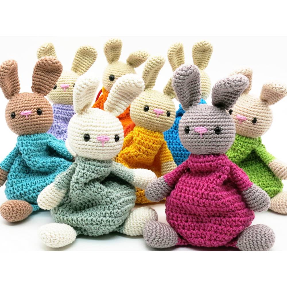 Mit 2.0 mm & 3.0 mm Nadel und Sport Garn (z.B. Catania Originals) wird das Häschen 14 x 8 cm groß (ohne Ohren, Arme & Beine).
