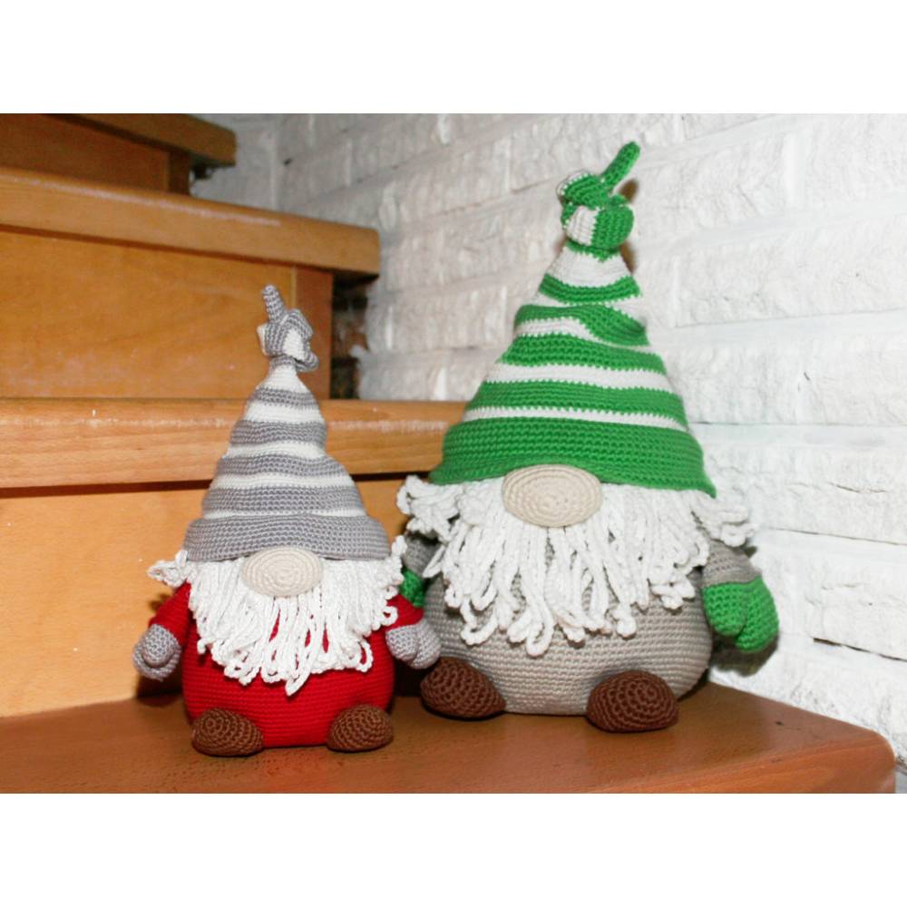 Der Knoten in der Mütze ist besonders bei der großen Türstopper Variante praktisch, da man den Wichtel so ganz einfach hochheben und umsetzen kann. Bei der kleinen Deko Variante sieht es einfach nur witzig aus. :)