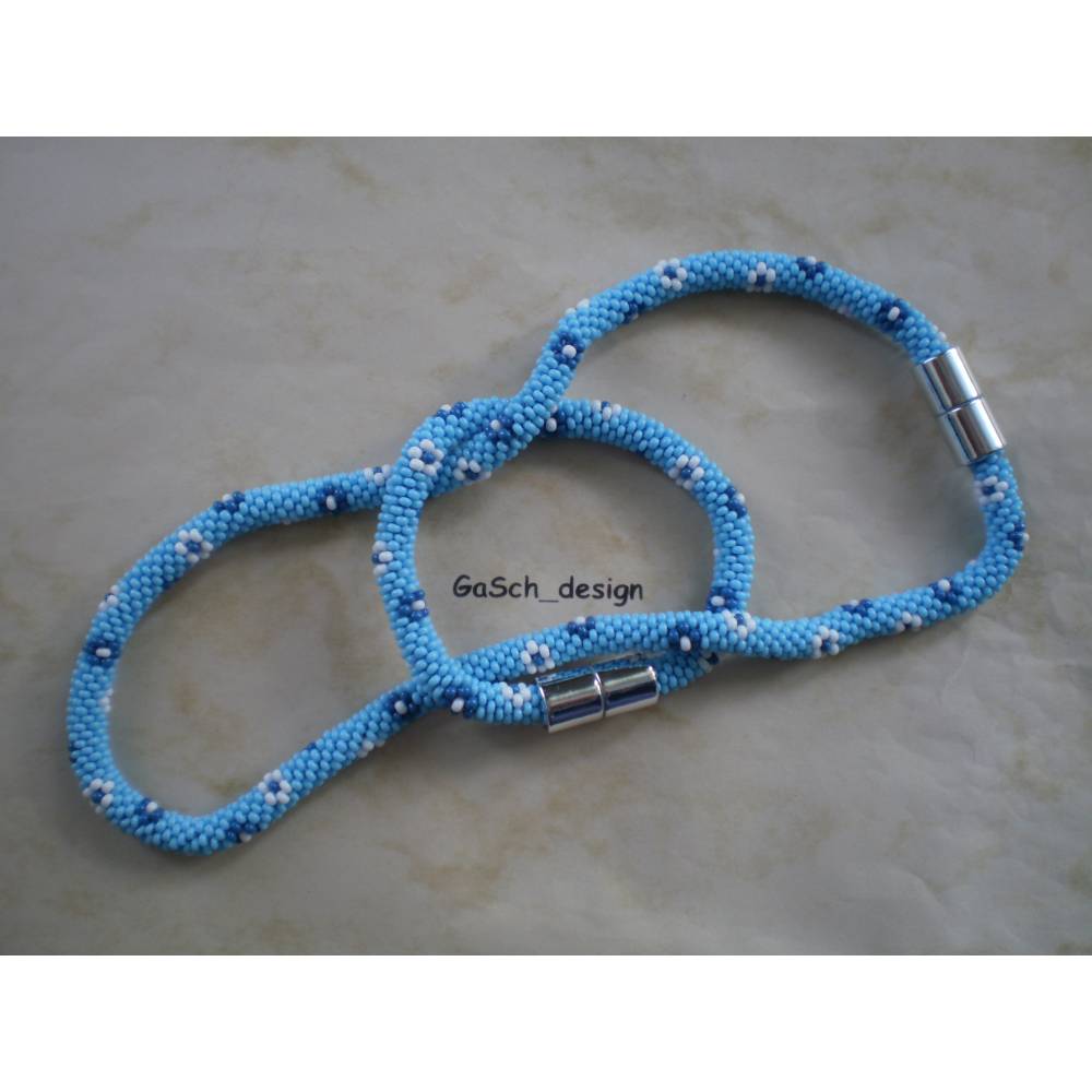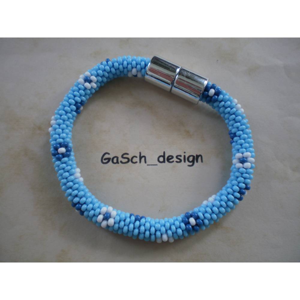Häkelarmband, gehäkeltes Perlenarmband * Blaue Blümchenwiese