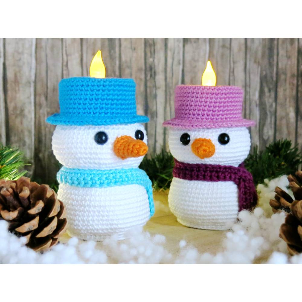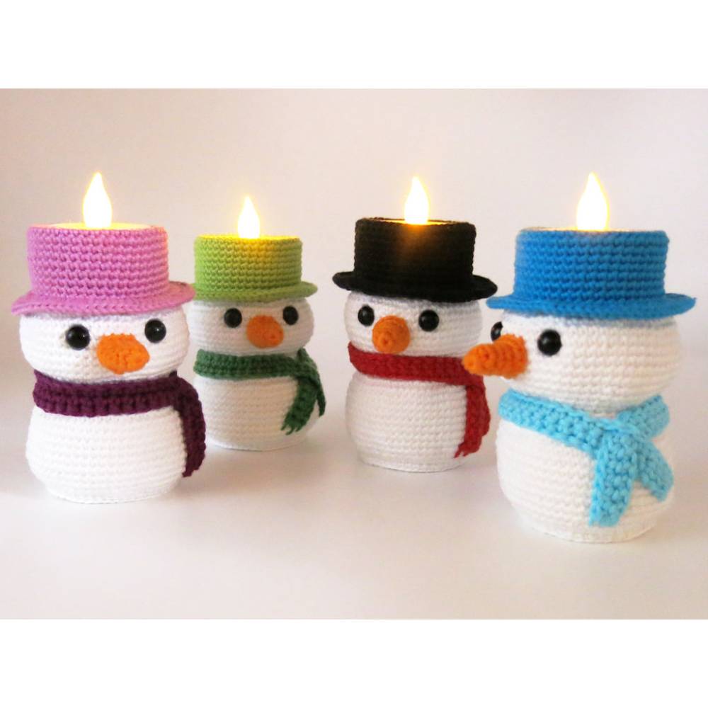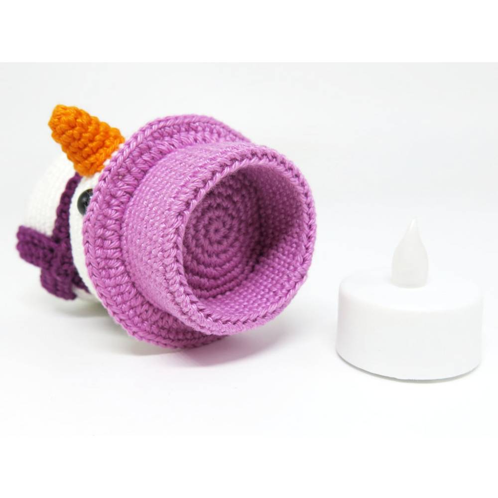 Mit 2.0 mm Nadel und Sport Garn wie z.B. Catona oder Catania Originals wird der Schneemann10 x 6 cm groß (ohne Teelicht).