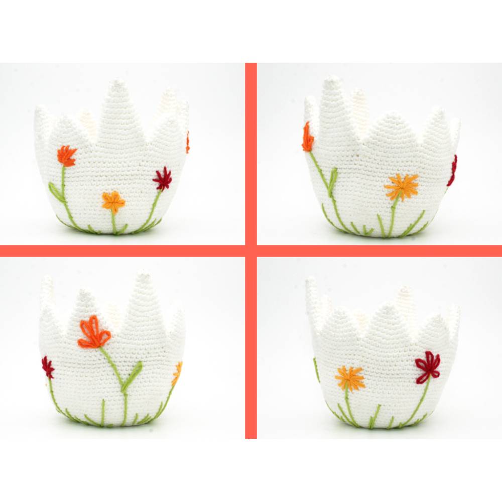 Der Korb wird 15 x 15 cm groß (mit 3.0 mm Nadel und DK Garn wie Puppets Lyric 8/8 oder 2 Strängen Sport Garn wie Catania Originals).