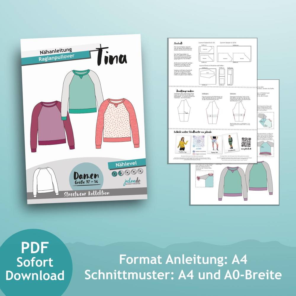 PDF Schnittmuster für Damen Raglanpullover "Tina",