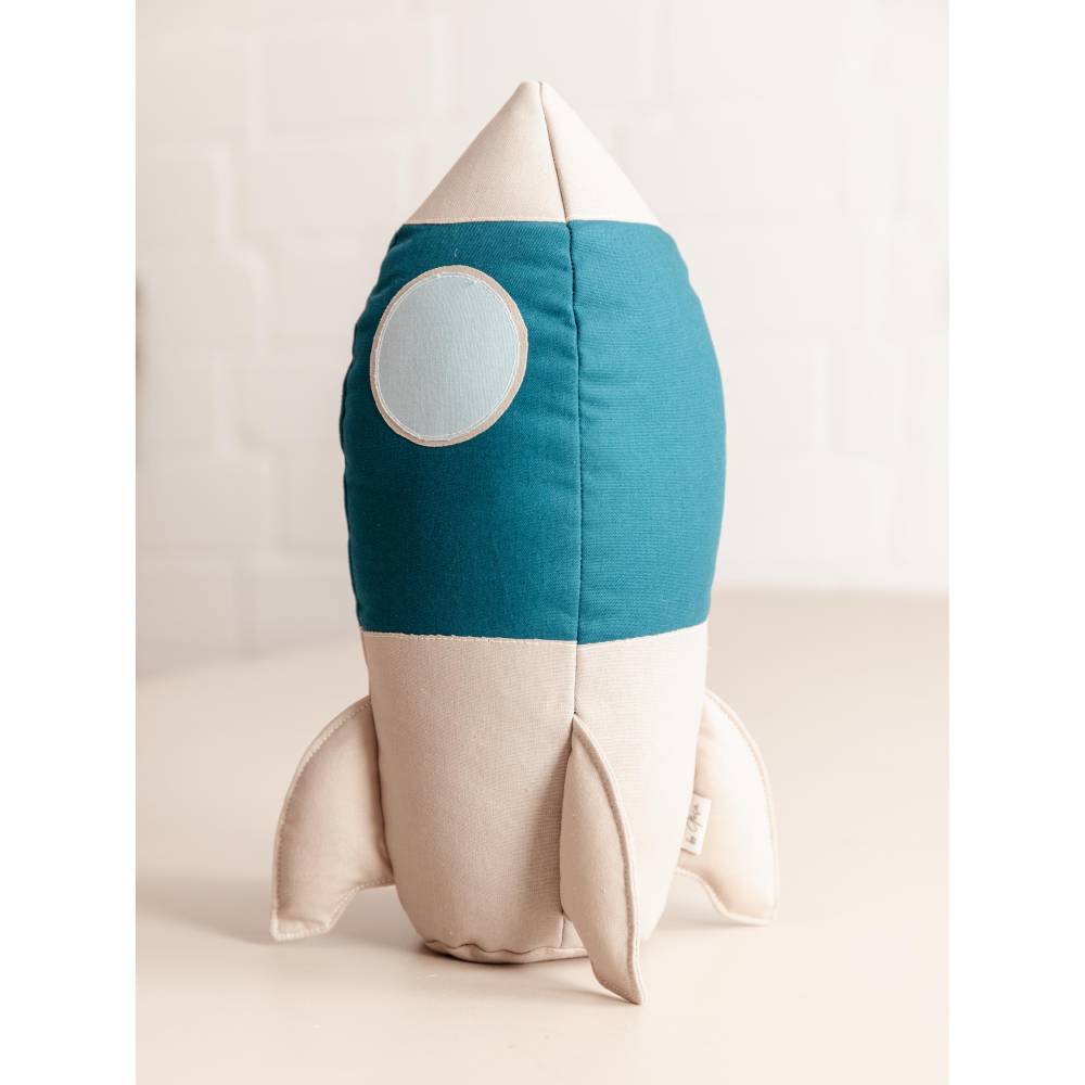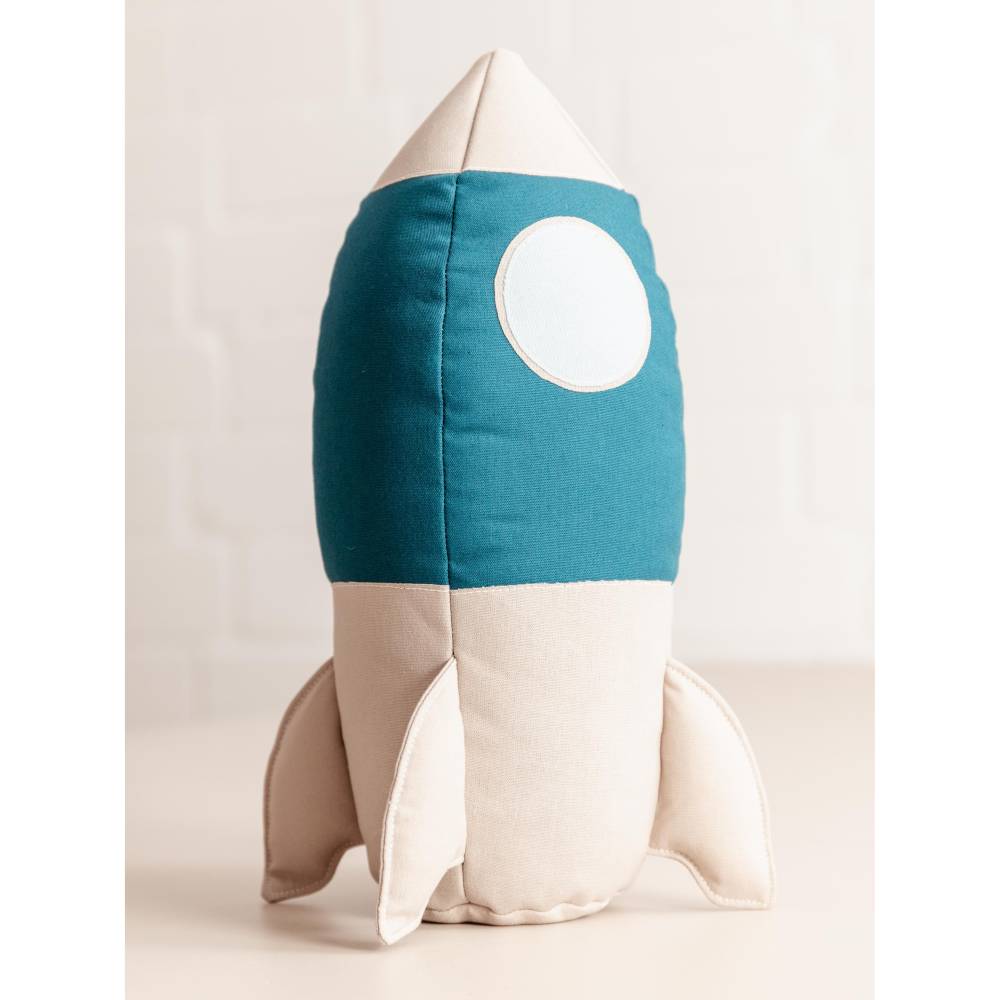 Die Idee, eine Rakete zu nähen, kam mir ganz spontan nach einem Besuch bei IKEA. In der Kinderabteilung habe ich viele süße Dekosachen gesehen, aber leider sahen sie oft billig aus und waren nicht wirklich nachhaltig hergestellt. Das brachte mich auf die Idee, selbst eine Rakete zu nähen – etwas Einzigartiges, das auch lange hält. Zuerst wollte ich ein UFO nähen, aber die Rakete ließ mich einfach nicht los.