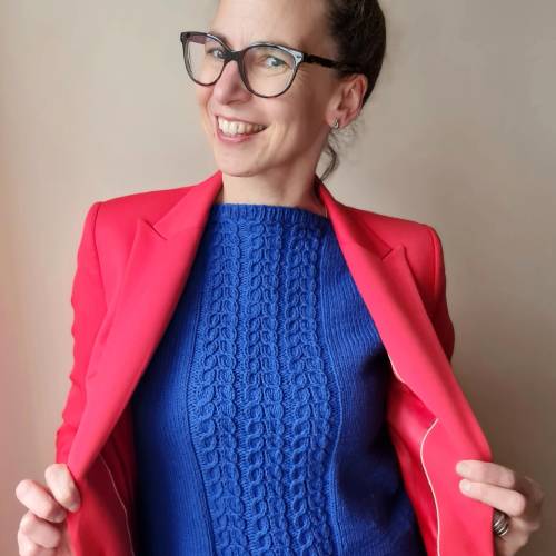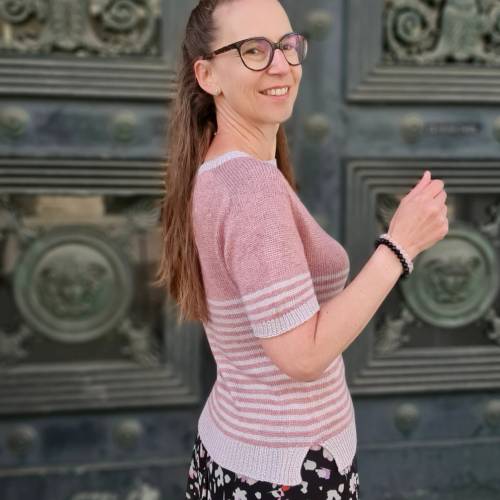 Bei meinem Teststrick hat sich herausgestellt, dass den Damen, die sehr locker stricken, Farbe C (Mohair-Garn) kurz vor Ende ausgegangen ist.