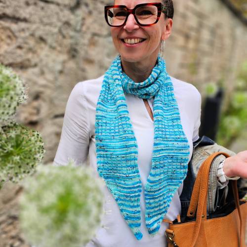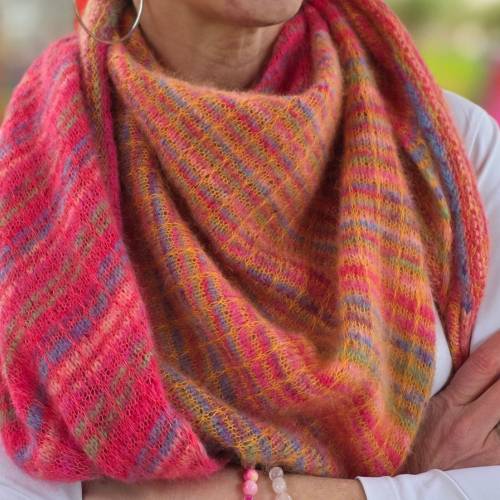 Ferner Wolle bietet exklusiv Strick-Kits für dieses Tuch an. Hier kann die Farbzusammenstellung frei gewählt werden.