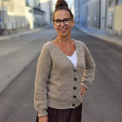 30 Maschen x 40 Reihen = 10 x 10 cm (mit Nadelstärke 2,5 mm) glatt rechts in der Runde gestrickt.