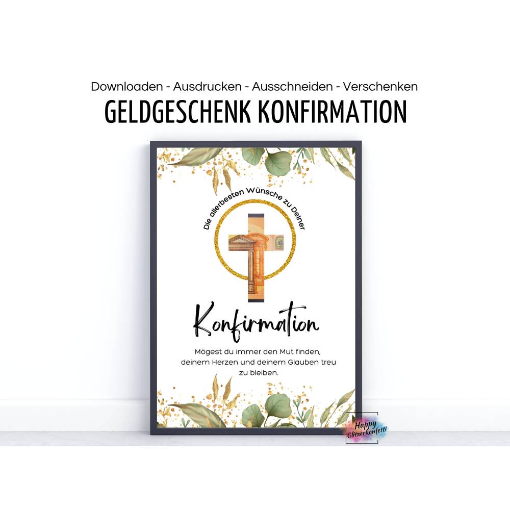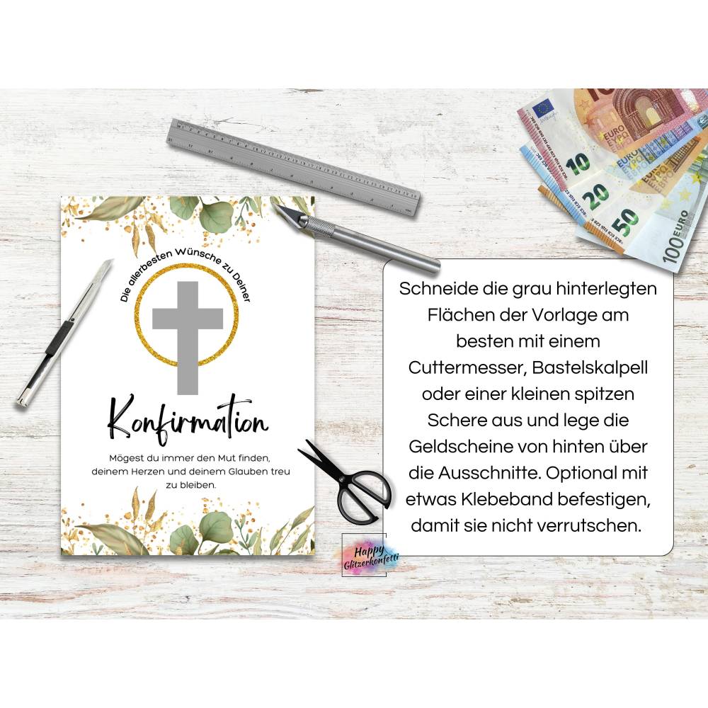 Geldgeschenk zur Konfirmation, Last-Minute Idee Geld kreativ verschenken, A4 Digitaler PDF Download zum Ausdrucken