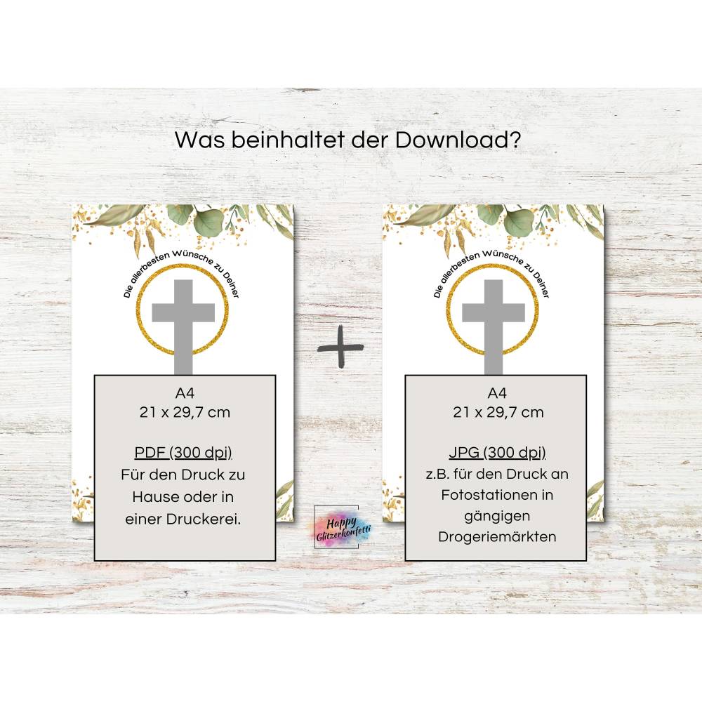 Sie eignet sich perfekt als Konfirmationskarte, als Poster im Bilderrahmen oder als ergänzender Glückwunsch von Paten, Großeltern, Eltern, Tanten, Onkeln oder Freunden. Flexibel einsetzbar – ob als kleines Einzel-Präsent oder als dekoratives Highlight bei der Feier.