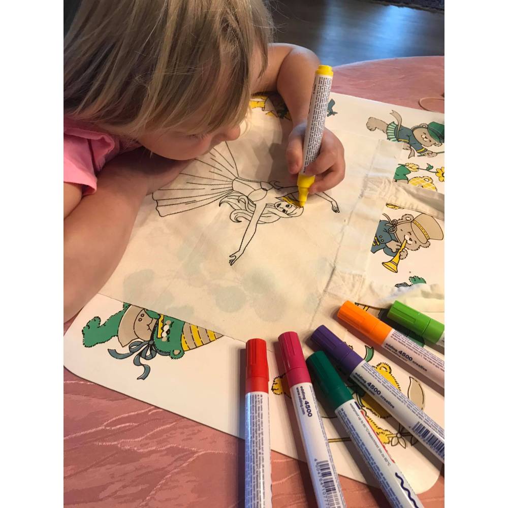 Perfekt für kreative Regentage: Die Umriss-Stickdatei kann zuerst gestickt und dann mit Stoffmalfarben ausgemalt werden – für ein ganz persönliches Kunstwerk.