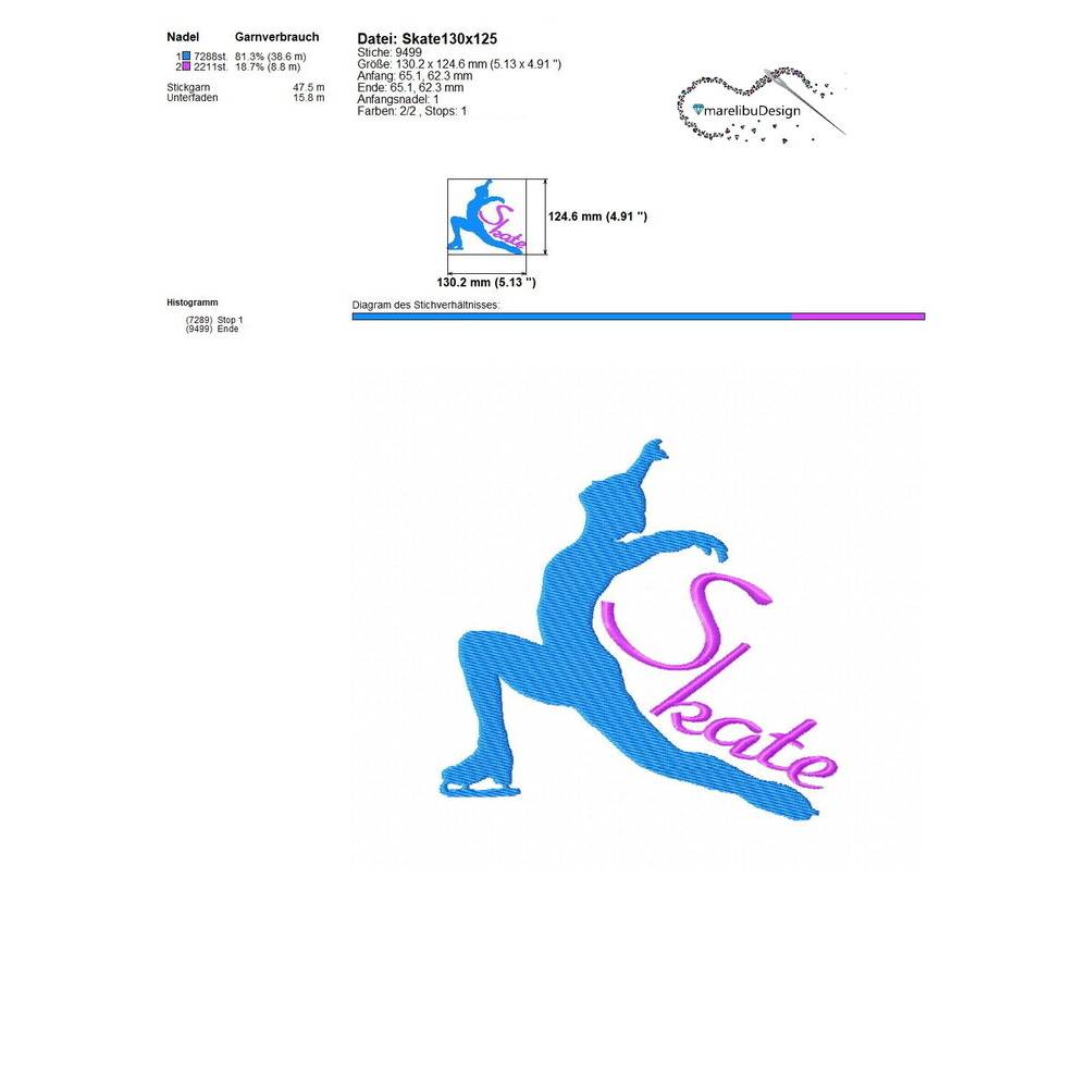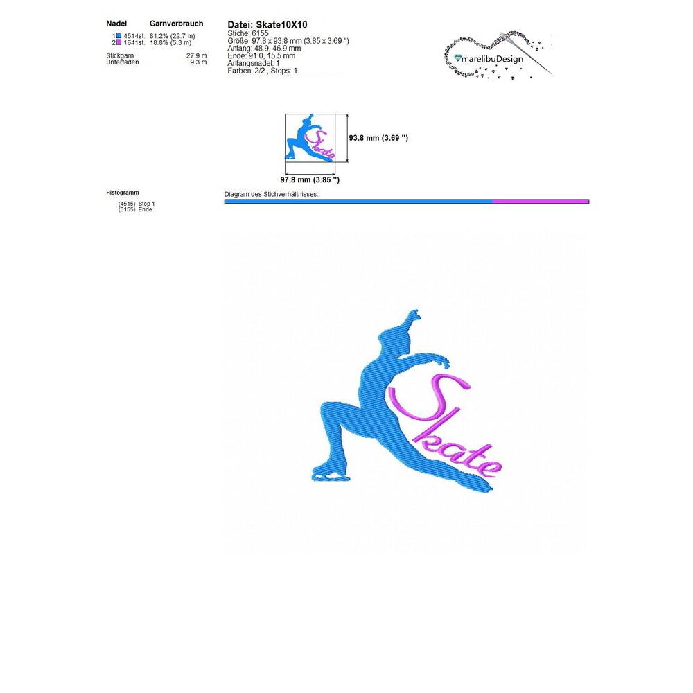 Stickdatei Skate, mit Gewerbelizenz, Schlittschuh Eiskunstlauf, 2 Größen, ab 10x10