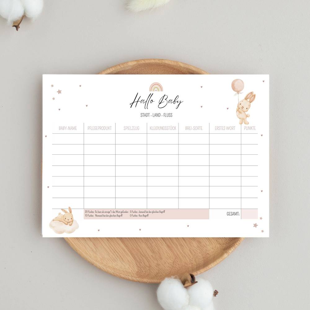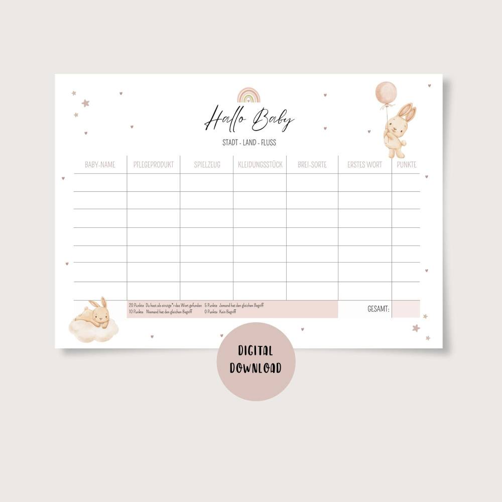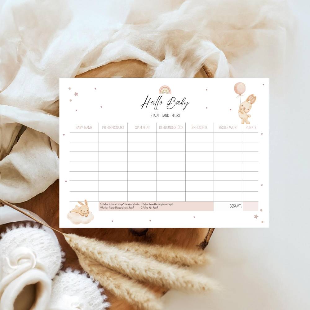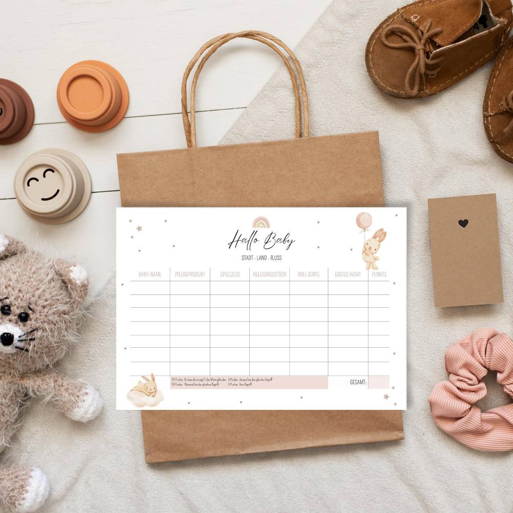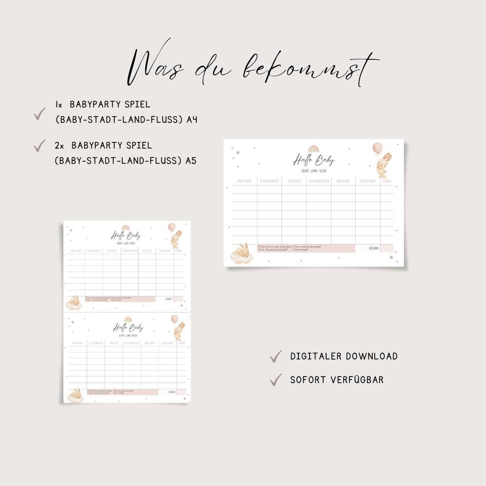 ✔️ Babyparty spiel Stadt Land Fluss in A4 und A5 als PDF-Datei